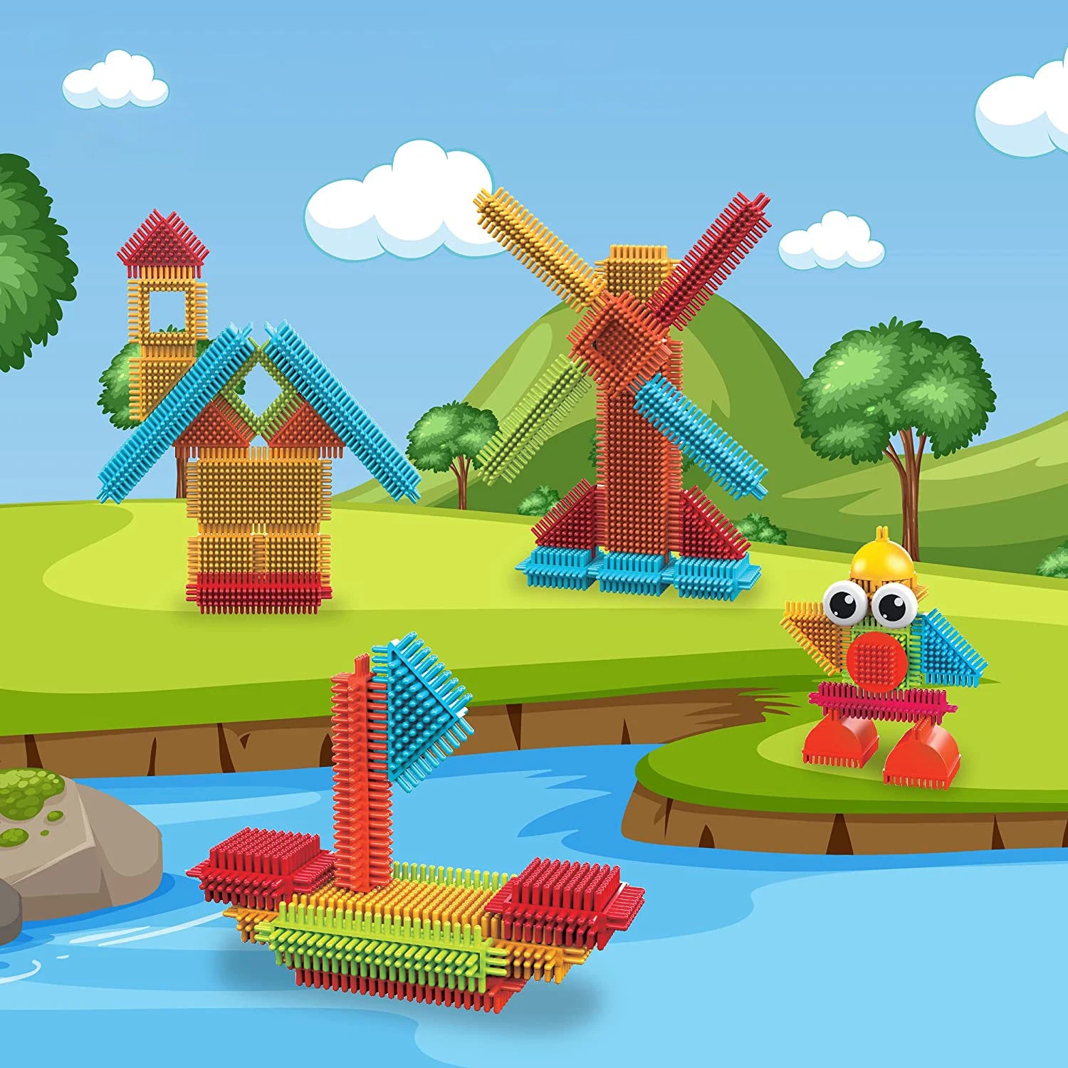 Ove kocke rješavaju uobičajene frustracije zbog neuspjeha u gradnji koristeći fleksibilnu bristle vezu koja ostaje zajedno tijekom igre, ali se lako odvaja za redizajn. Izdržljiva plastika osigurava dugotrajnu upotrebu dok potiče kreativno rješavanje problema i razvoj finih motoričkih vještina.