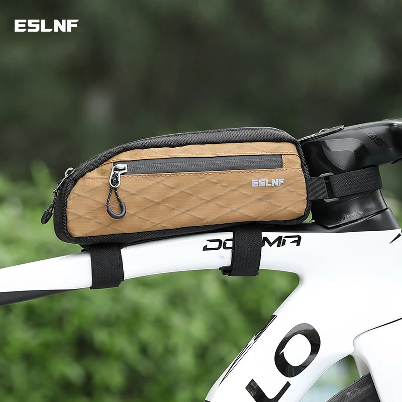 Vodootporna torba za alat na gornjoj cijevi za MTB i cestovne bicikle od ESLNF je kompaktna, vodootporna torba dizajnirana za montažu na gornju cijev vašeg bicikla. Ova prijenosna torba za okvir je napravljena za MTB i cestovne bicikle, omogućujući vam brzi pristup osnovnim alatima i malim predmetima dok vozite. Podrijetlom iz Kine, ova ESLNF torba za bicikl kombinira praktičan dizajn s zaštitom od vremenskih uvjeta, pomažući vam da ostanete spremni za popravke i vožnje u pokretu.