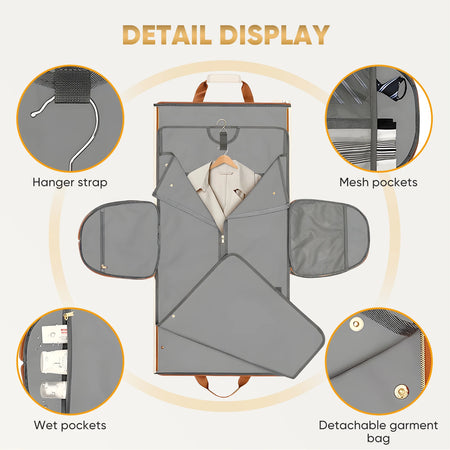 - Posebne Karakteristike: Odvojiva torba za vješanje odijela, vodootporni i otporni na ogrebotine materijal, zatvoreni ziperi, premium metalna kopča