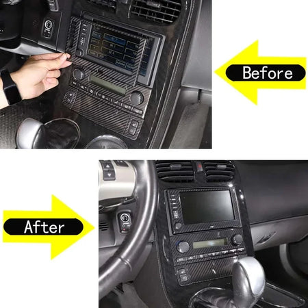 Unaprijedite unutrašnjost svog Chevrolet Corvette C6 s pravim okvirom od karbonskih vlakana, dizajniranim za modele od 2005. do 2013. godine. Izrađen od autentičnih pravih karbonskih vlakana, ovaj okvir prekriva navigacijski ekran i područje prekidača za podešavanje klima uređaja, pružajući premium, trkački inspiriran izgled dok štiti površine od ogrebotina i redovitog trošenja. Okvir savršene prilagodbe poboljšava vizualnu privlačnost kabine bez ometanja kontrola, otvora ili pristupa. Odaberite između opcija boja uključujući Crnu, Crvenu, Mat i Uzorak kovanog metala kako biste uskladili ili unaprijedili svoj unutrašnji stil. Proizvedeno u kvalitetnom ISO9001-certificiranom pogonu i dizajnirano za jednostavnu instalaciju s unaprijed nanesenim dvostrano ljepljivim trakama. Molimo potvrdite da okvir odgovara vašem automobilu prije instalacije i kontaktirajte nas s bilo kakvim pitanjima.