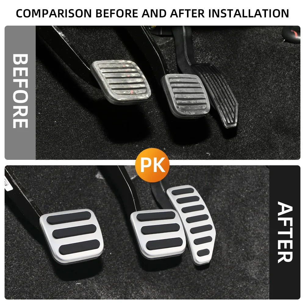 - Instalacija: Pokrivač pedala gasa jednostavno se postavlja preko originalne pedale gasa; pokrivač pedale kočnice zahtijeva uklanjanje gume s originalne pedale kočnice prije postavljanja novog pokrivača.