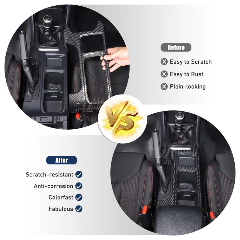 Jednostavna instalacija je ugrađena: poklopac se pričvršćuje automobilski ljepilom za sigurnu, bešavnu prilagodbu. Dizajniran posebno za Subaru WRX modele od 2022. do 2025., pokriva ključna područja poput središnje konzole, panela mjenjača, područja volana i još mnogo toga kako bi pružio kohezivan, premium izgled interijera.