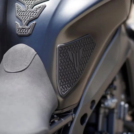 Zaštitite, držite i stilizirajte svoju Yamaha MT-09 s MT-09 zaštitnikom za rezervoar. Ovaj trodijelni gumeni set dizajniran je za MT-09 iz 2021.–2023., pružajući vrhunsku zaštitu rezervoara od zatvarača jakni i kontakta koljena, dok poboljšava prianjanje i kontrolu tijekom agresivne vožnje. Gornja podloga za rezervoar štiti površinu rezervoara od ogrebotina, dok dvije bočne podloge čuvaju od ogrebotina koljena i abrazije. Izrađene od gume visoke gustoće, podloge su napravljene za izdržljivost i sportski izgled koji nadopunjuje dinamičnu stanicu MT-09. Za najbolje rezultate, primijenite prema uputama i ostavite ljepilo da se stvrdne 24 sata prije vožnje motocikla.