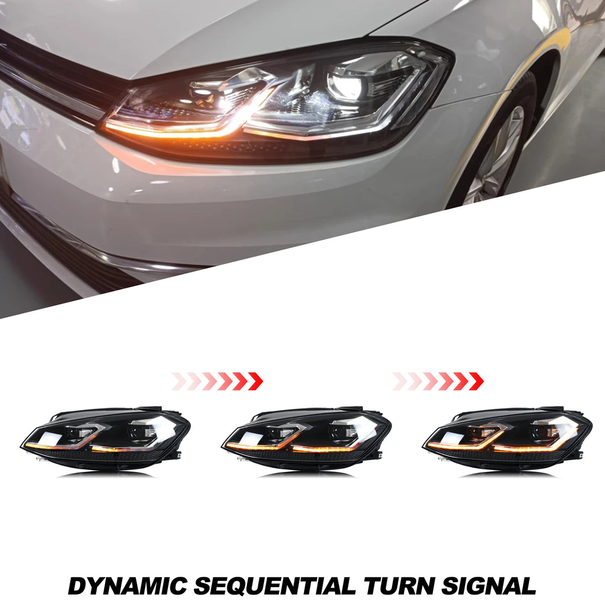 Unaprijedite svoj Volkswagen Golf 7 MK7 (2018–2021) s Xunder Full LED farovima, preciznom prednjom lampom dizajniranom za modele s tvorničkim halogenim farovima. Ovaj komplet zamjenjuje vaše standardne jedinice kako bi pružio svjetliju iluminaciju, moderan izgled i sigurniju vožnju u svim uvjetima. Par WD-0380A-C ima sekvencijalni signal, ugrađene LED kratke svjetlosti i duga svjetla za pouzdanu vidljivost. S CE, DOT i EMARK certifikatima, ovi farovi su napravljeni za kvalitetu i dugotrajne performanse. Instalacija je uključena, a profesionalna instalacija se snažno preporučuje kako bi se osiguralo savršeno uklapanje i poravnanje. Napomena: Nije kompatibilno s Golf 7 2013–2017, Golf GTI/R/GTE ili Golf varijantama s tvorničkim LED ili HID farovima.
