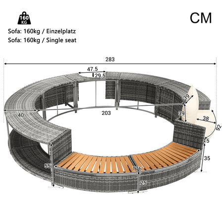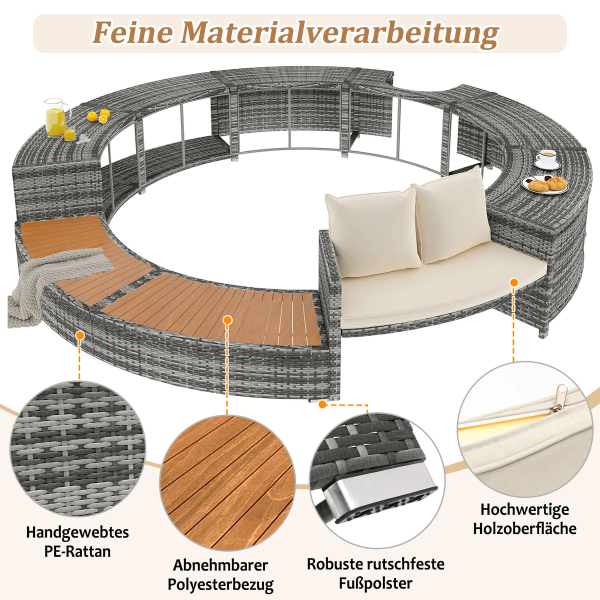 Povećajte svoj vanjski prostor s Jugacool Garden Lounge Round Couch—izrađenim za opuštanje uz bazen, retreat-e s hidromasažnim kadama i opuštena okupljanja. Ova samostalna okrugla sofa spaja moderni PE ratan s suvremenom prstenastom strukturom kako bi stvorila luksuzno sjedeće područje nalik spa oko vašeg vodenog elementa. Izrađena da izdrži vanjski život, otporna je na vremenske uvjete i lako se održava, tako da možete uživati u suncu dugi niz godina.