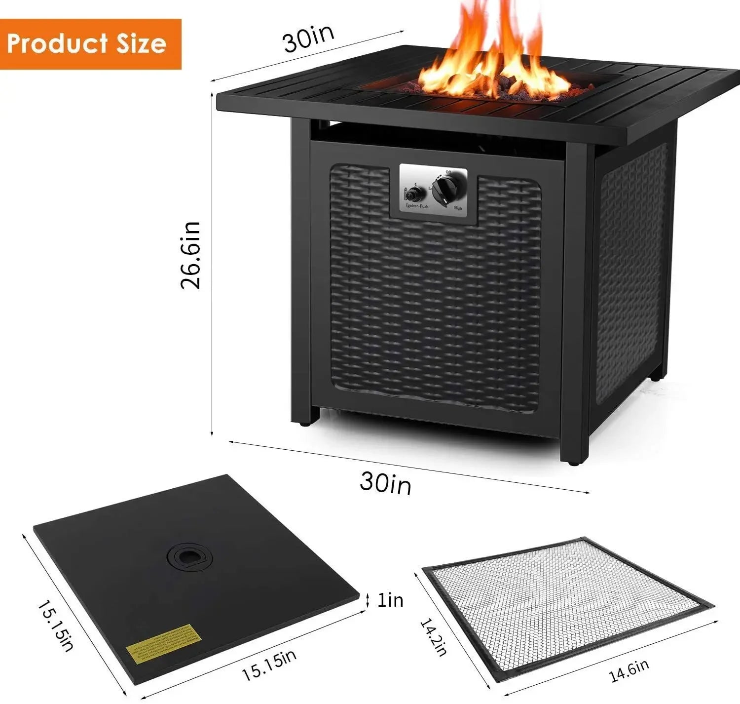 Plinski Oganj Stolić 50K BTU Vanjski Propan S Pokrivačem pruža snažnu vanjsku toplinu s čistim, modernim izgledom. Elektronski palnik od 50,000 BTU osigurava visoko učinkovitu toplinu i sigurnije paljenje, dok tijelo od nehrđajućeg čelika otporno na hrđu osigurava dugotrajne performanse. Potpuno zatvoren stolni dio skriva plinsku bocu (nije uključena) i drži kabele i nered izvan vidokruga, tako da vaša terasa ili vrt ostaju stilizirani dok zabavljate. Dostupni u dva velikodušna veličina—28" i 30"—ovi vatreni stolovi nude dovoljno prostora za obiteljska okupljanja, večere na otvorenom ili večernje opuštanje. Lava kamenčići, zaštitni pokrivač protiv iskrica i vodootporni 600D pokrivač štite izvor vatre i vanjski namještaj od vremenskih uvjeta. Sva elektronička i mehanička oprema, uređaji i strojevi koje prodaje InterCyprus zemljama EU su CE certificirani i imaju dvogodišnje jamstvo. Na intercyprus.com od 2002. — pouzdano za kvalitetu i pouzdanost.