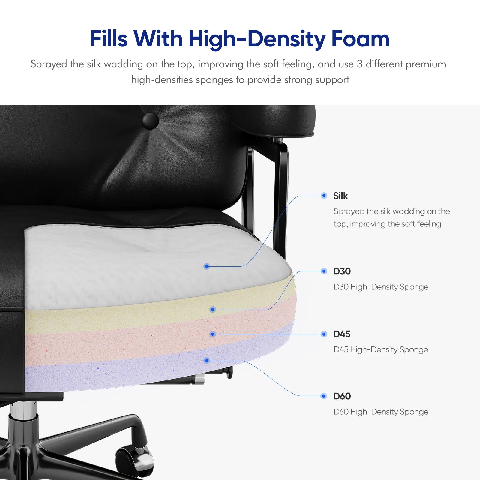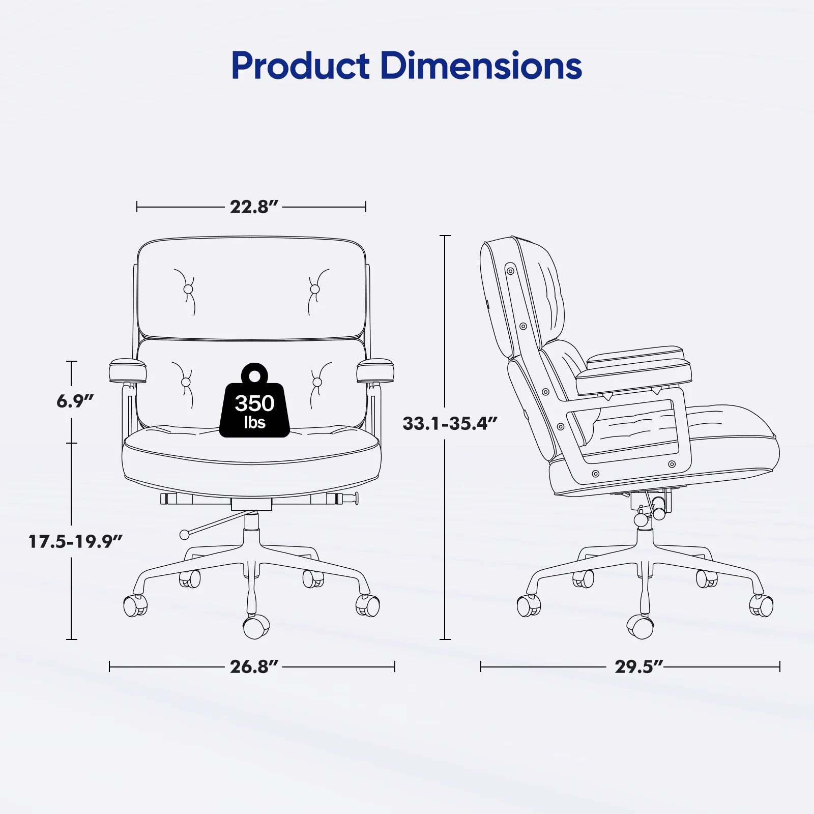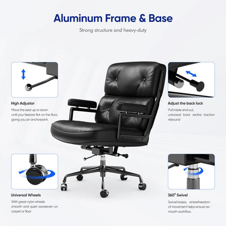 Iskusite vrhunac udobnosti i stila s Uredskom stolicom od prave kože s kotačima, rukohvatima i rotacijom od Champracera. Ova udobna moderna klasična stolica je napravljena za duge radne dane, spajajući premium materijale s ergonomskim dizajnom kako bi podržala vaša leđa, vrat i ramena dok se fokusirate.