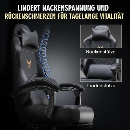 - Zdrav položaj, sretnije sesije: koristite podesivi naslon za glavu i lumbalnu podršku za održavanje pravilnog poravnanja kralježnice tijekom dugih sati.