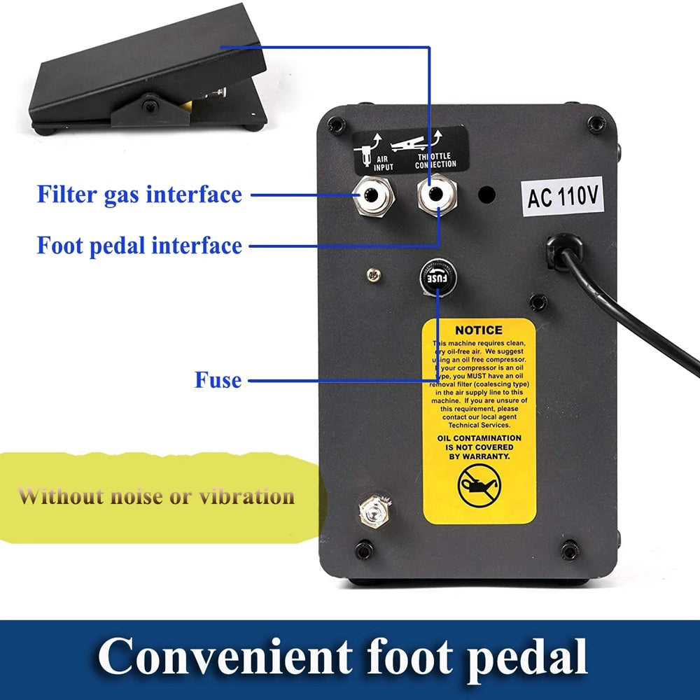 - Zahtjev za zrakopritisak: 0,15 MPa–0,25 MPa. Molimo osigurajte da koristite kompatibilni zračni kompresor za ispravan rad.