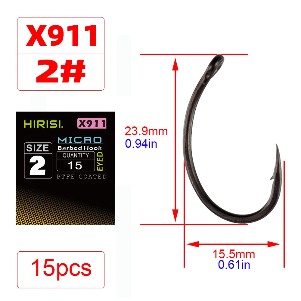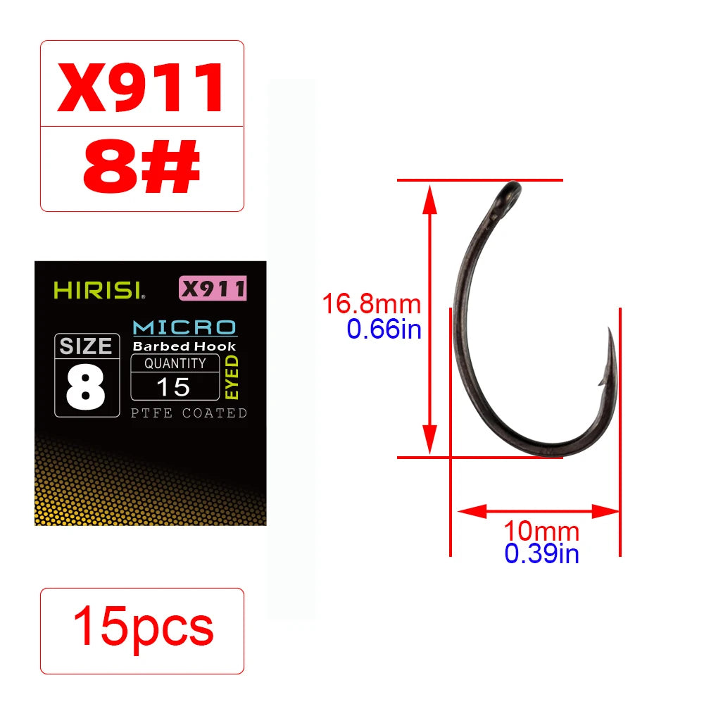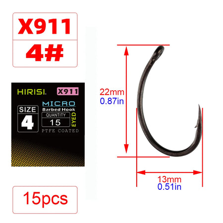 - 15 x Hirisi PTFE Premazane Visoko Ugljične Čelične Mikro Barbed Kuke X911 s Okom (Veličine 2# i 4#)