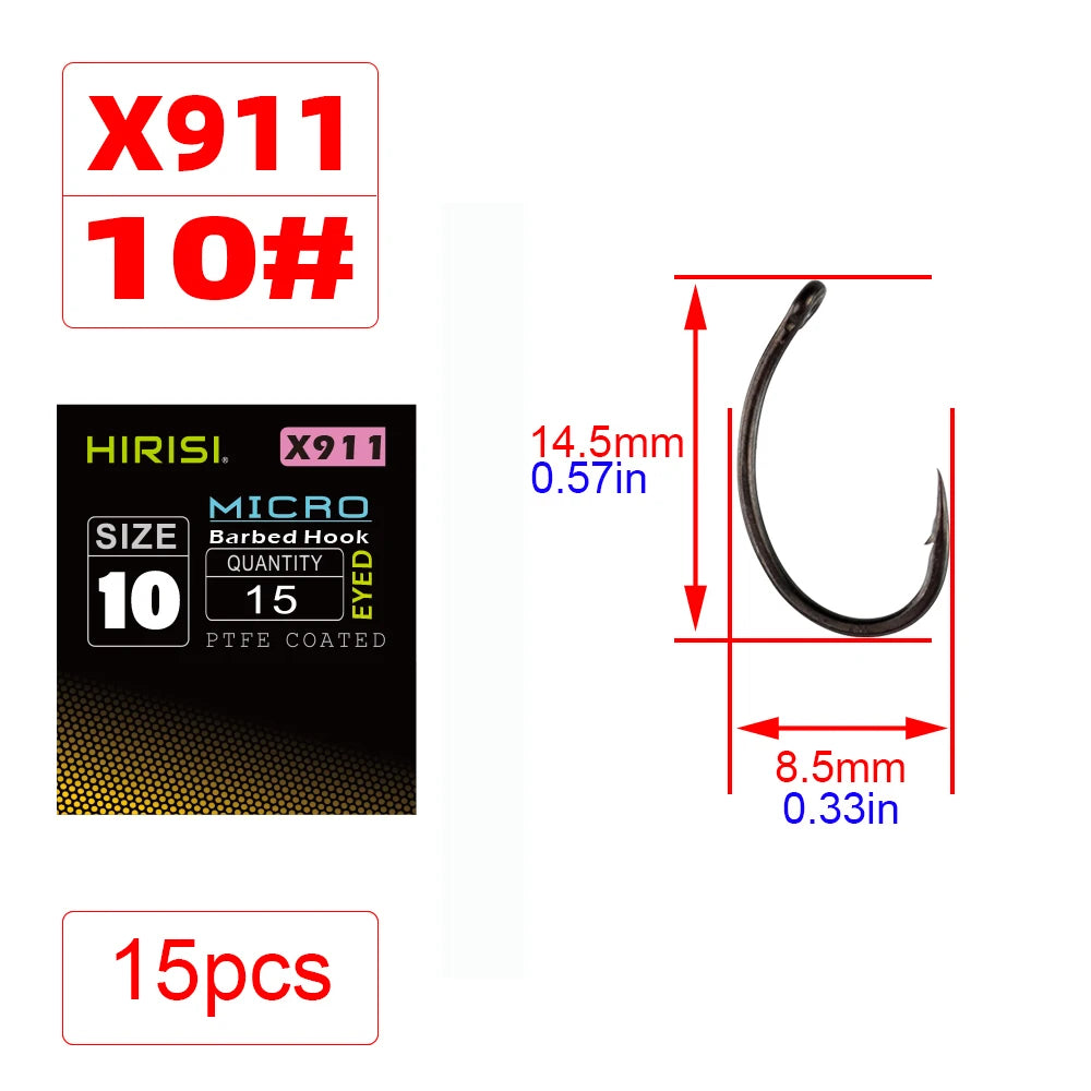 Upoznajte Hirisi PTFE Premazane Visoko Ugljične Čelične Mikro Kuke X911 — set od 15 komada za ribolov šarana dizajniran za pouzdane montaže, jednostavno rukovanje i brzu montažu. Kuke dolaze u veličinama 2# i 4#, s okom za brzo vezivanje i jednostavno predstavljanje mamca. Izrađene od visoko ugljičnog čelika i završene izdržljivim PTFE premazom, ove mikro barbed kuke pružaju snagu, otpornost na koroziju i glatku akciju u slatkovodnom ribolovu. Potekle iz Kine, Hirisi donosi kvalitetu u vašu kutiju za pribor s dokazanom izvedbom na vodi.