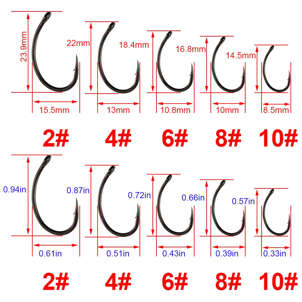 Dizajn With Eye pojednostavljuje montažu, dok mikro barbed drži mamac sigurno i minimizira ozljede ribe tijekom puštanja. PTFE premaz smanjuje trenje tijekom bacanja i povlačenja, pomažući vam da postignete duža, glađa bacanja s manjim rizikom od zaplitanja. Ovaj set od 15 komada idealan je za ribolovce šarana koji žele pouzdane kuke koje se dobro slažu s crvima, kukuruzom, bojlijima ili drugim malim mamcima.