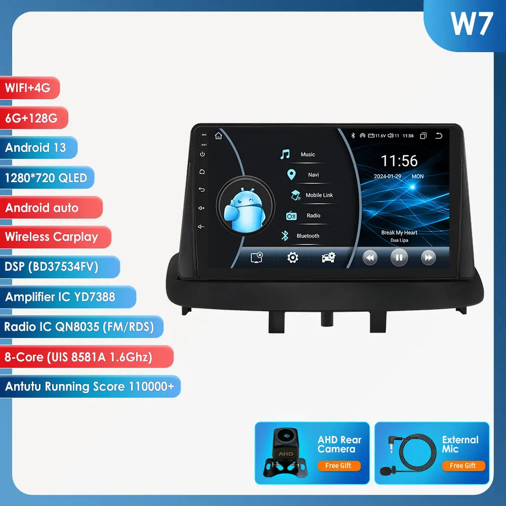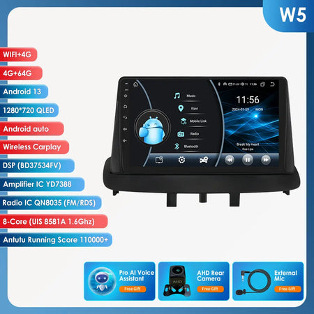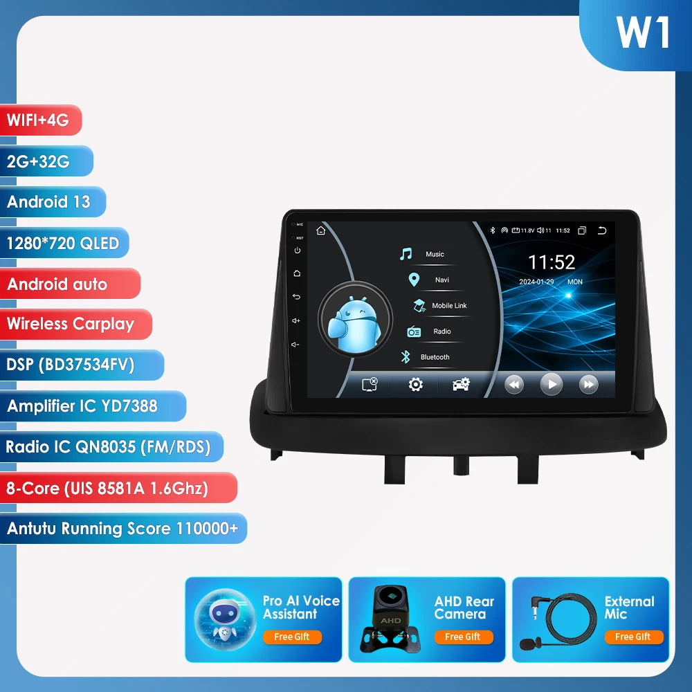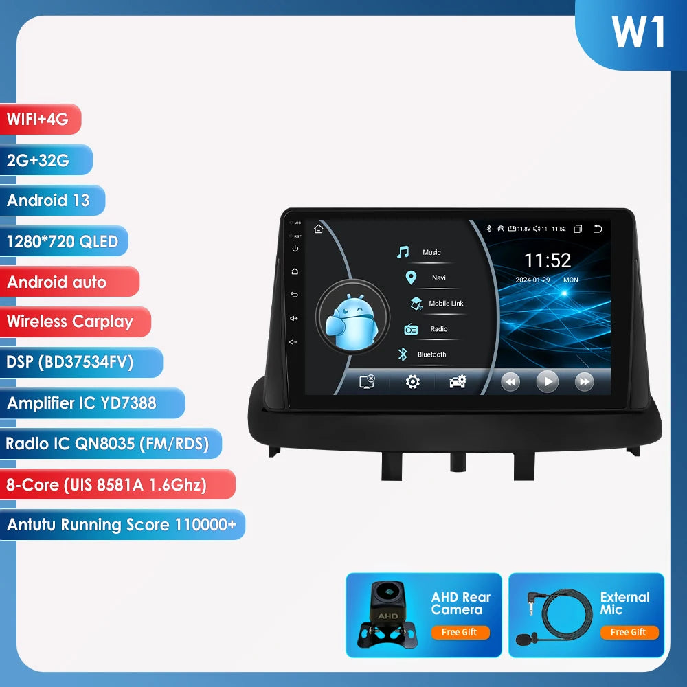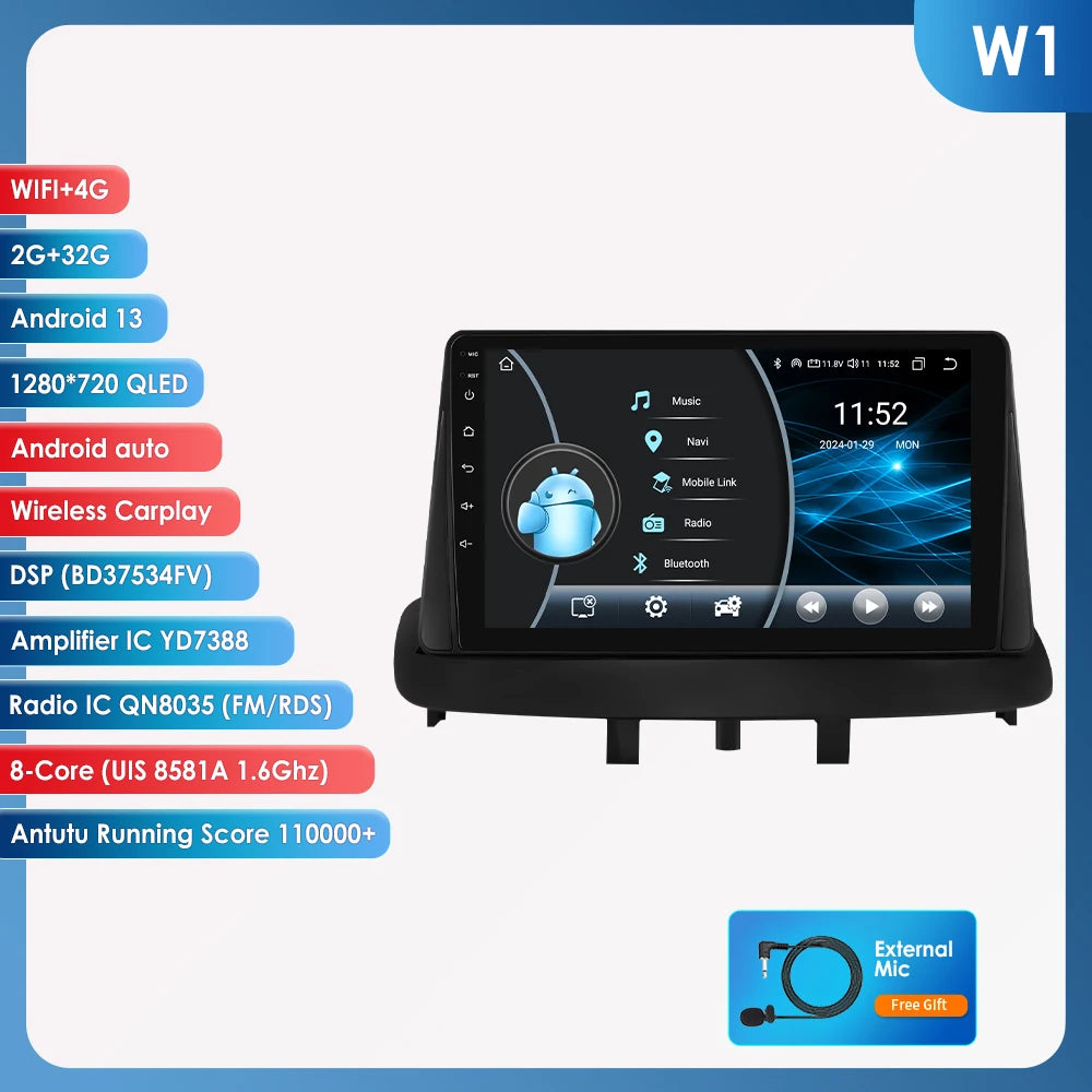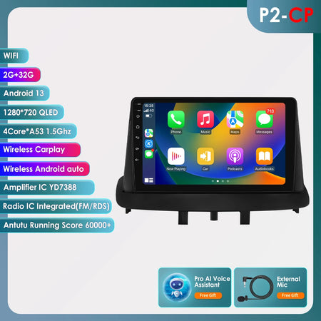 Nadogradite svoj Renault Megane 3 Fluence s Hizpo CarPlay 4G AI automobilski radio. Ovaj 9" double-DIN multimedijski prijemnik kombinira moćan Android 13 sustav s besprijekornom integracijom CarPlay i Android Auto, AI glasovnim upravljanjem, ugrađenim GPS-om i 4G povezivošću kako bi vas zabavio, povezao i osigurao na svakom putovanju. Dizajniran posebno za Renault Megane 3 Fluence modele od 2008. do 2014., zamjenjuje tvorničku jedinicu modernim infotainment centrom koji podržava kontrole na volanu putem uključene CAN-Bus kutije. Uživajte u oštrim vizualima, upravljanju bez ruku i multitaskingu s podijeljenim ekranom uz ugrađeni zvučnik i mikrofon za jasne pozive i glasovne naredbe. Vanjski mikrofon je uključen kao besplatan poklon, dok RCA kablovi nisu uključeni.