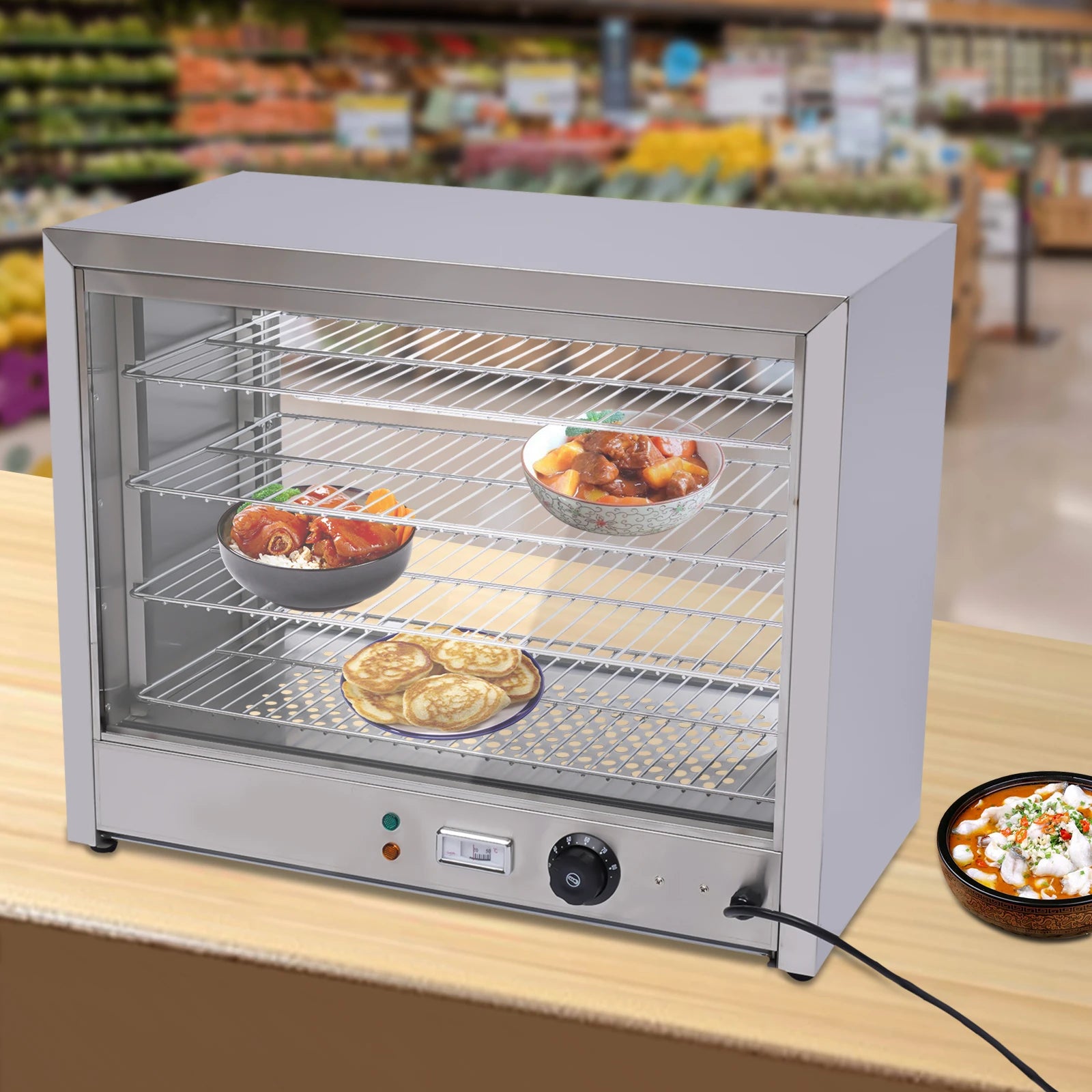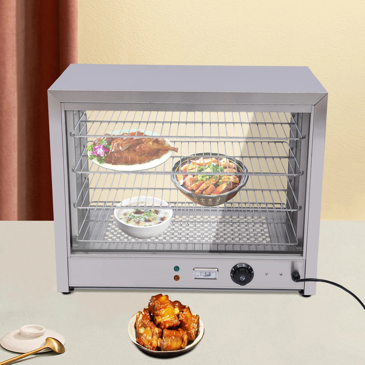 - Maksimizirajte svoj prostor s dizajnom od 4 police, idealnim za pohranu i zagrijavanje više jela odjednom—odlično za buffete, kamione s hranom ili obiteljska okupljanja. Savjet: Podesite razmak između polica kako biste smjestili više predmeta poput cijelih piletina za svestraniju upotrebu.