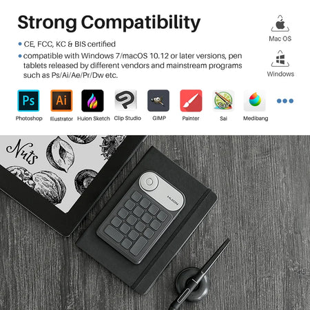 - Kompatibilan s Huion olovnim tabletima, olovnim ekranima i olovnim računalima; radi i s drugim markama