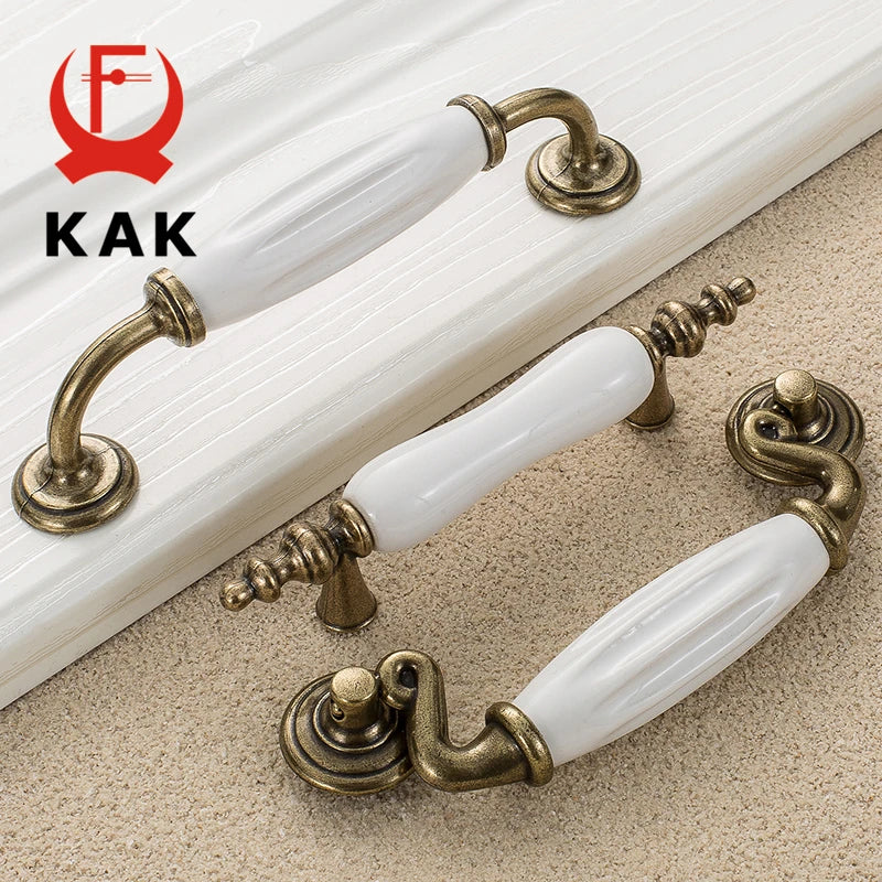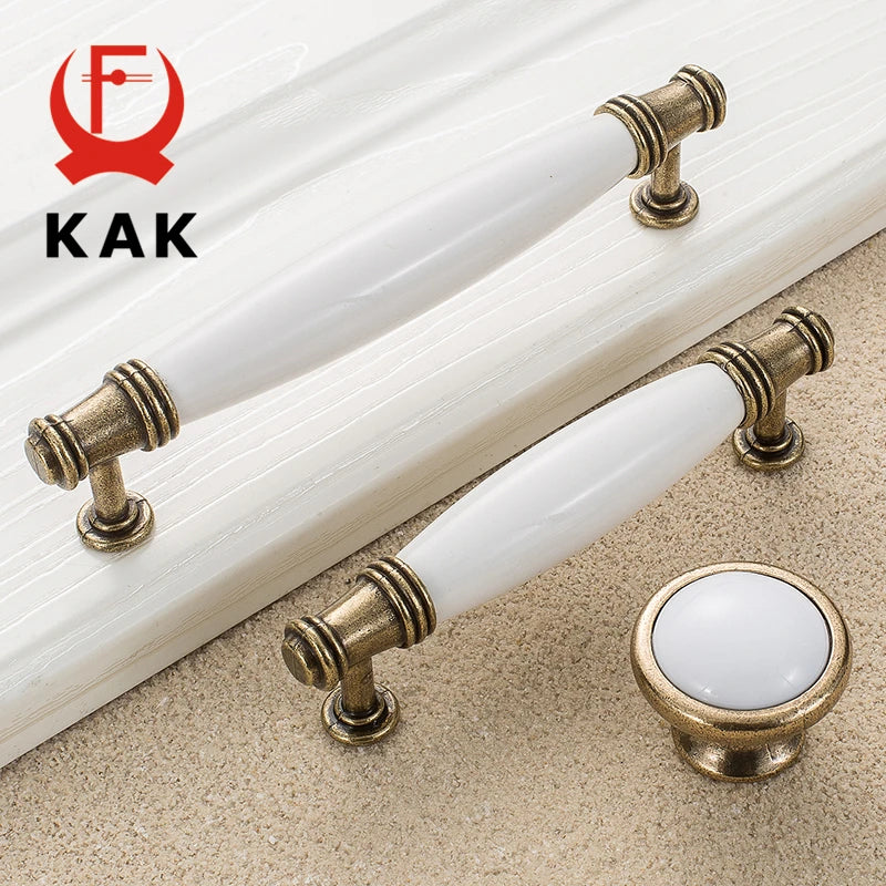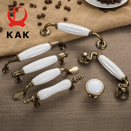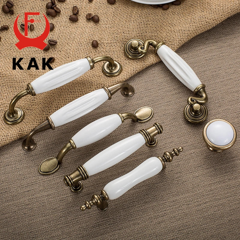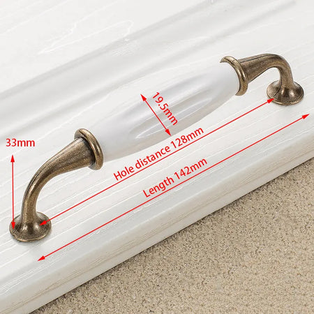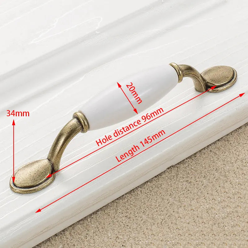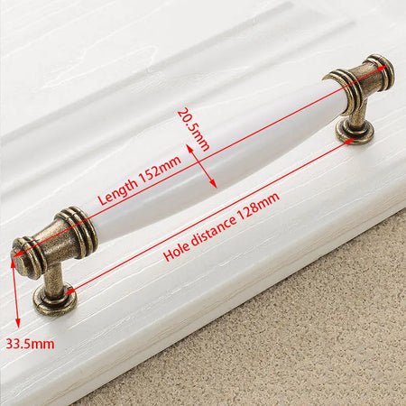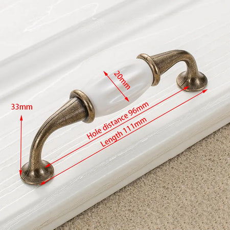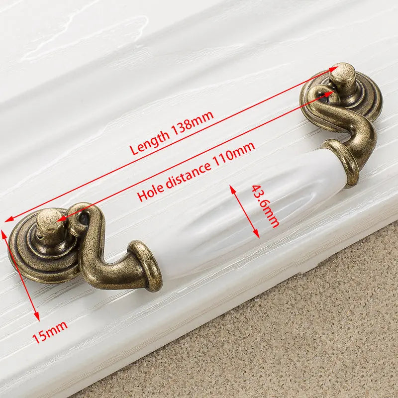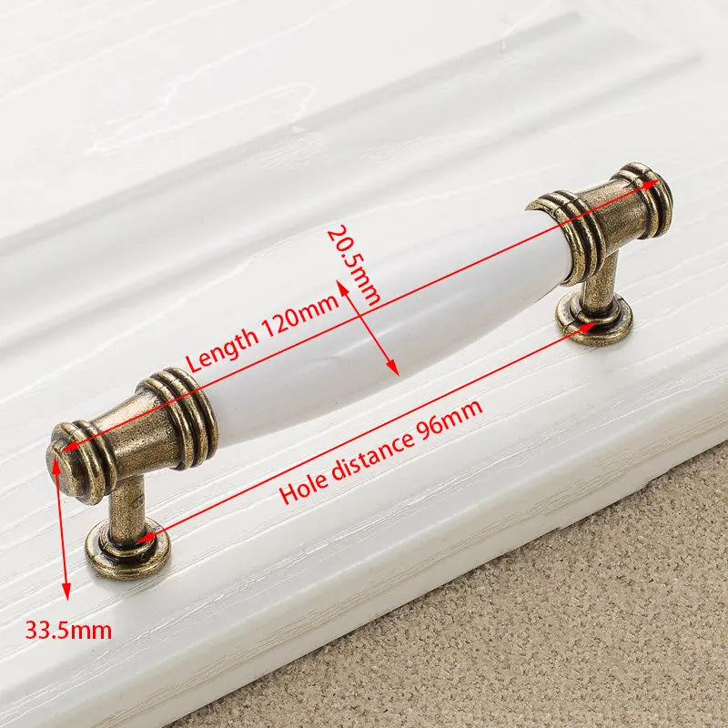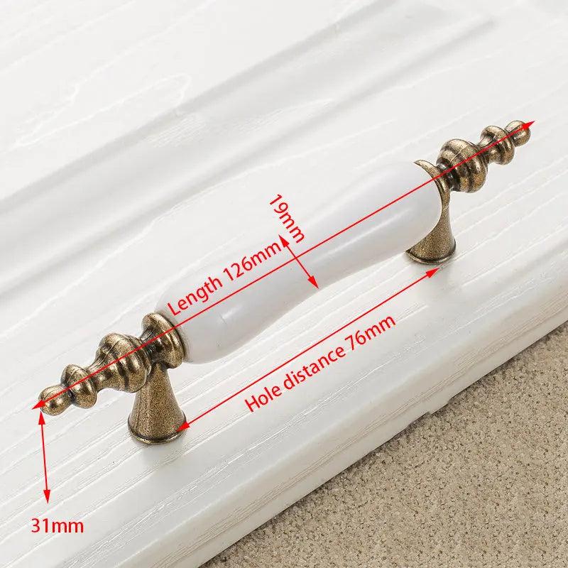 Antikni brončani bijeli keramički ručici za ormare i dugmadi za ladice
