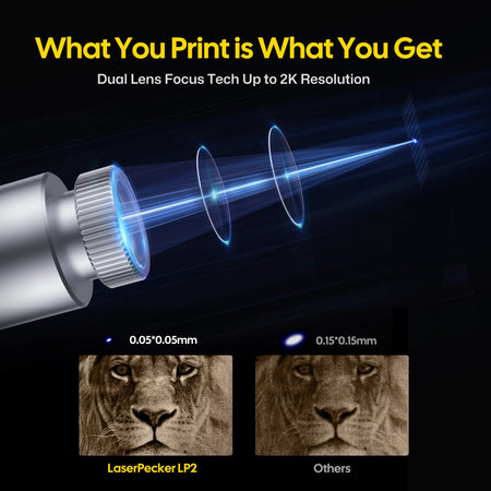Dizajniran za svestranost, LP2 ima površinu graviranja od 100x100mm kao standard i do 100x2000mm s opcionalnom trećom osi, omogućujući rad s malim detaljima i dužim projektima. Radi s napajanjem od 12V 5A (ili 100-240V ulaz) i brzo se povezuje s LaserPecker aplikacijom putem Bluetootha, omogućujući jednostavan prijenos slika s vašeg pametnog telefona ili PC-a u nekoliko sekundi. Zaštitni štit, naočale i sigurnosne značajke pomažu vam da radite s povjerenjem, dok višeresolucijske opcije graviranja (1k/1.3k/2k) pružaju oštre, detaljne rezultate na raznim površinama.