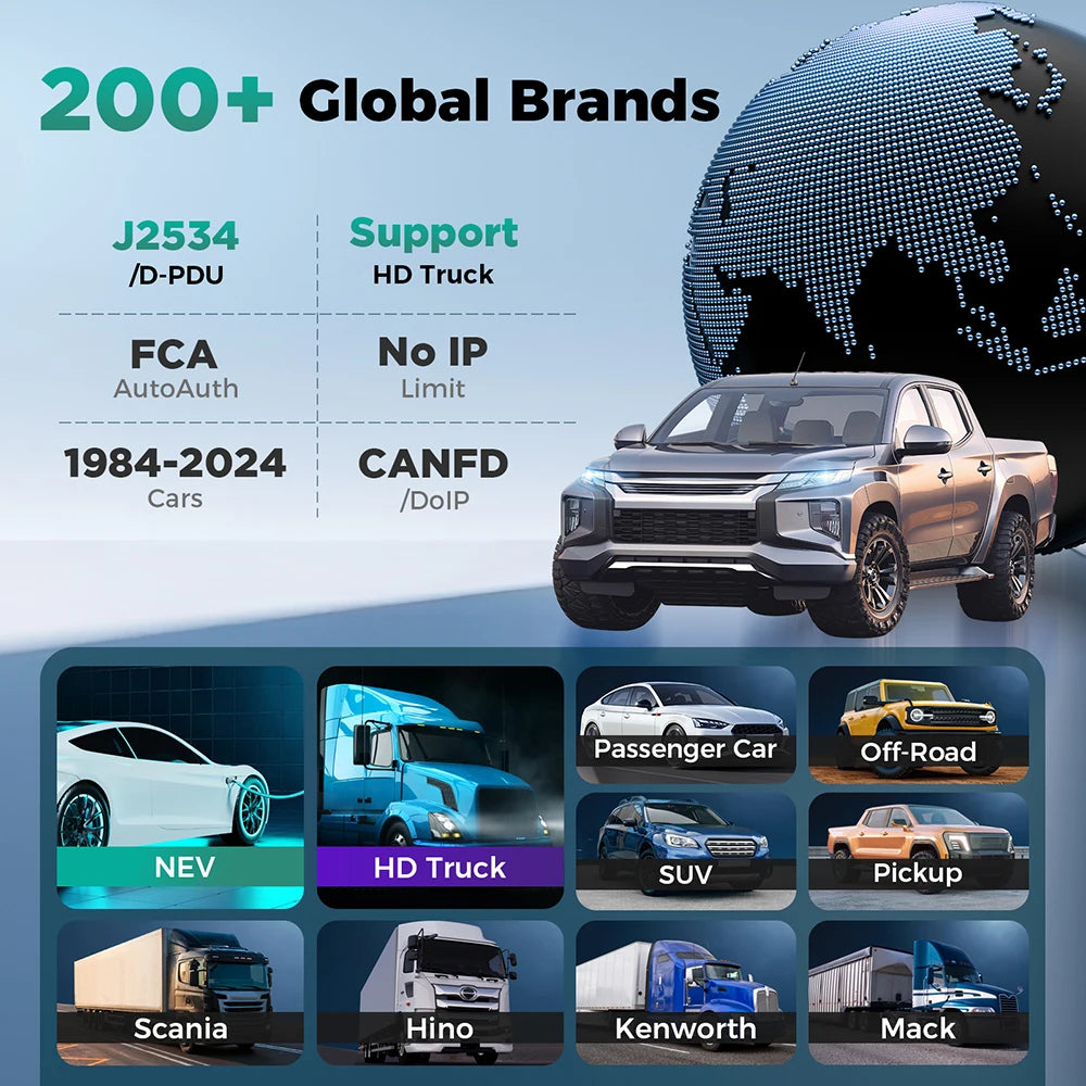 - Koristite za brzu, terensku dijagnostiku na više modela vozila s točnošću na razini tvornice.