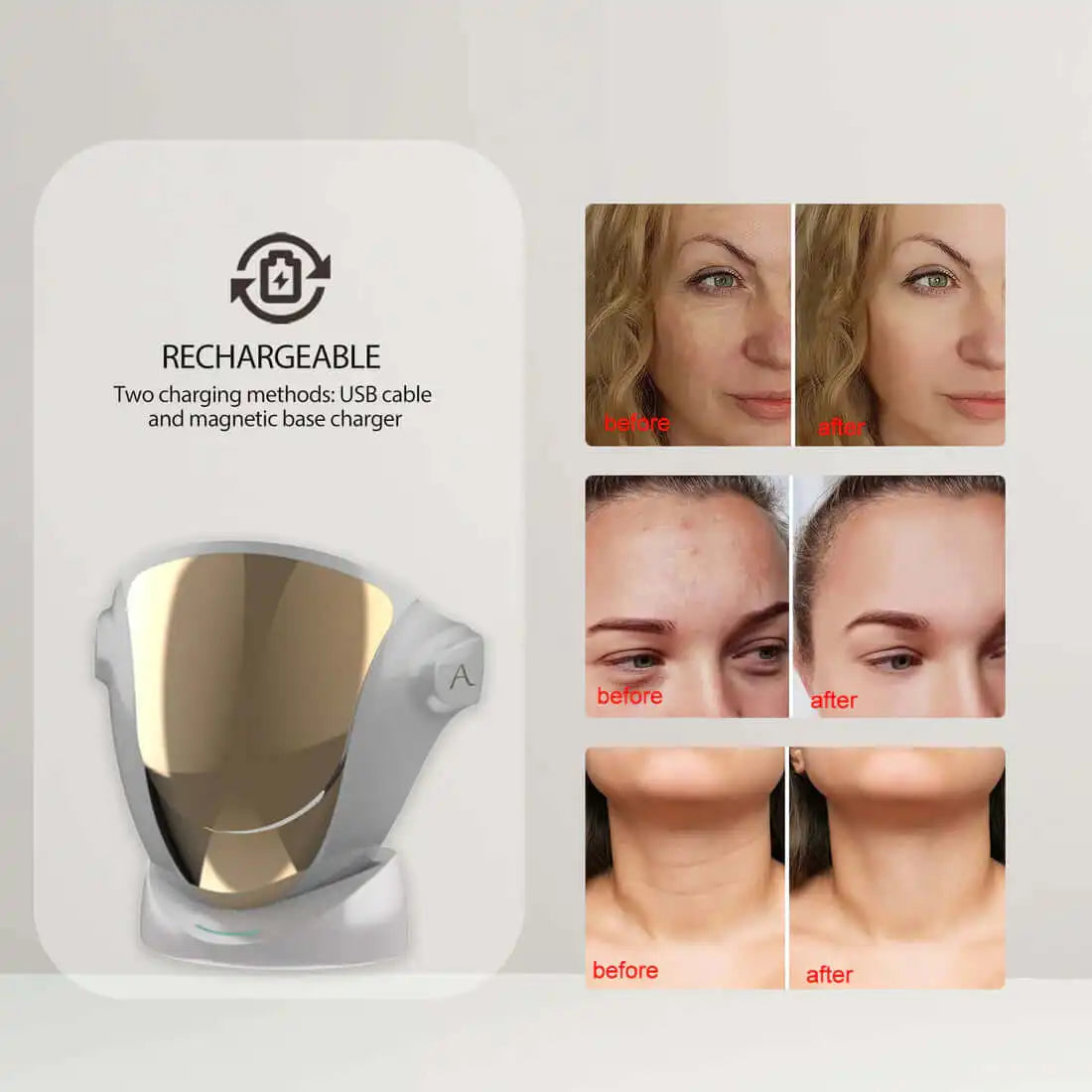 Crvena Plava LED Foton Maska za Obnavljanje Kože protiv Starenja, Akni i Posvjetljivanje, Terapija za Lice i Vrat, Smola