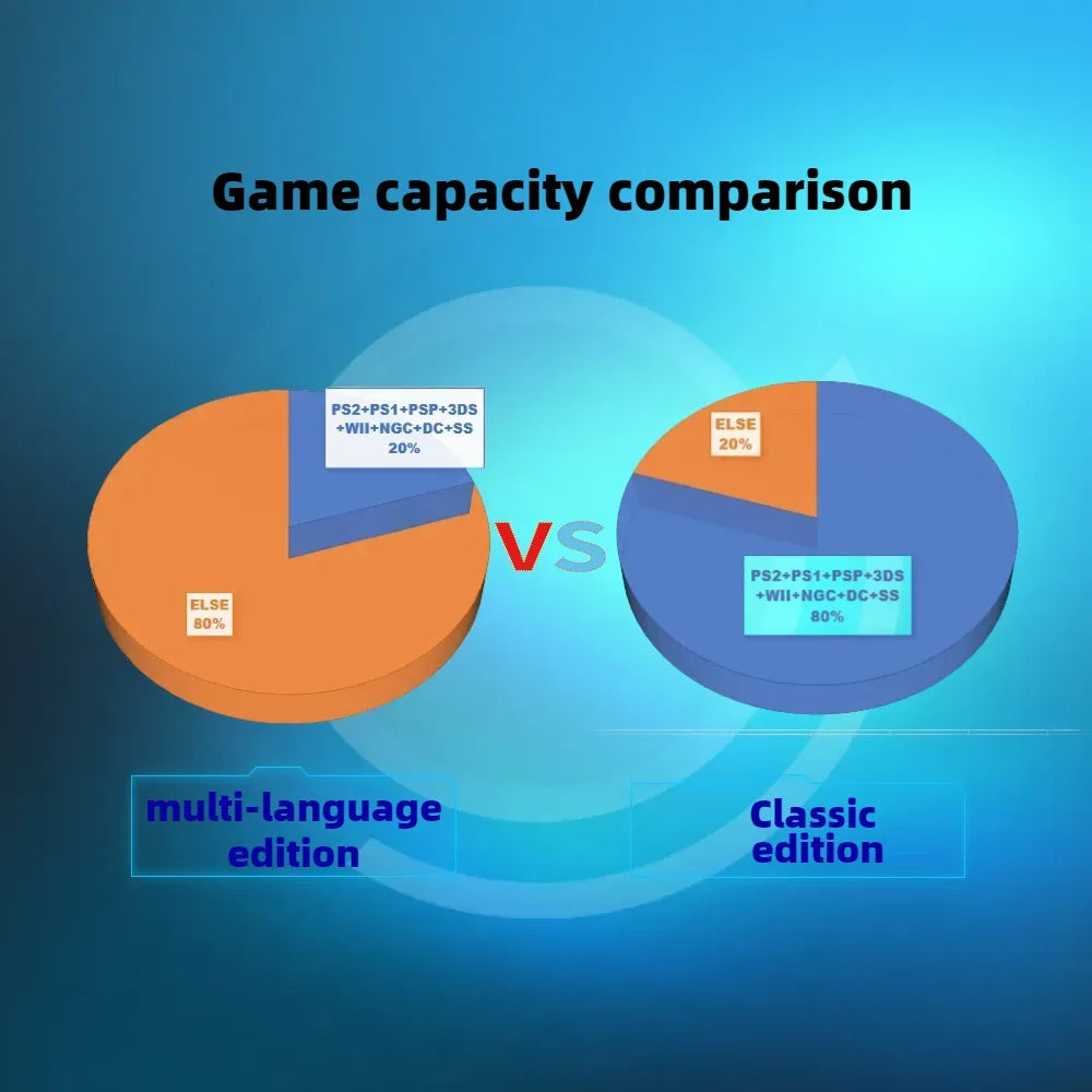 - Odabrane igre (veliki naslovi): Veliki naslovi (PS2, PSP, WII, NGC, 3DS) oko 80% kapaciteta kartice; brojevi: 1T ~10000+; 512G ~5000+; 256G ~2000+