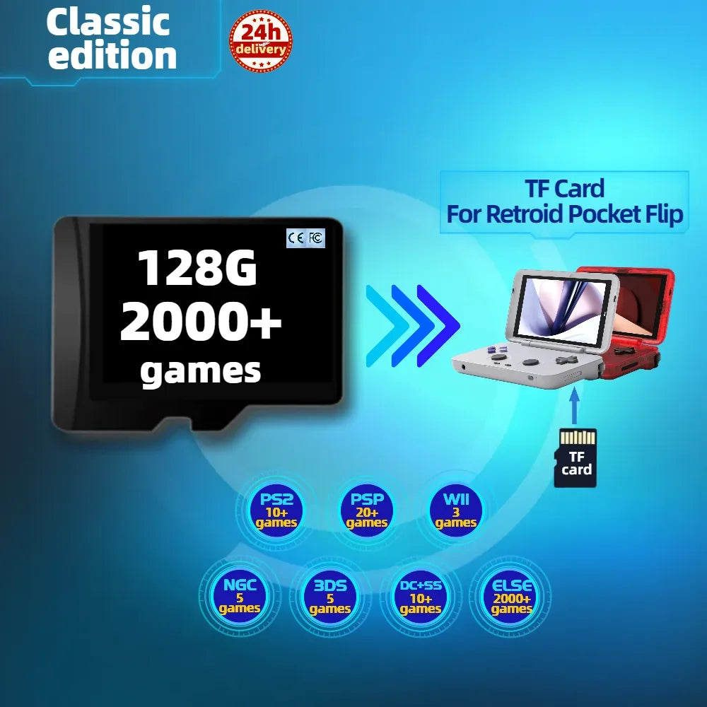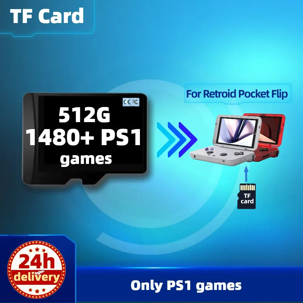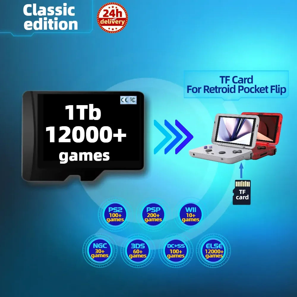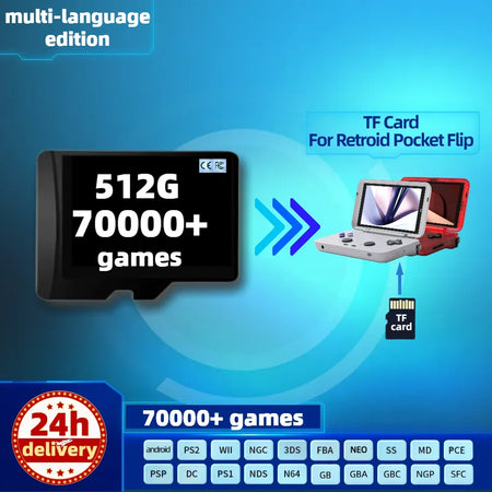 Otkrijte beskrajno retro igranje s Memorijskom karticom za Retroid Pocket Flip RP3 — kolosalna 1T memorijska kartica unaprijed učitana s 100000+ igara. Prilagođena za Retroid Pocket Flip, ova kartica također podržava RP3 i kombinira praktičnost s ogromnom bibliotekom klasika iz 1980-ih i 1990-ih.