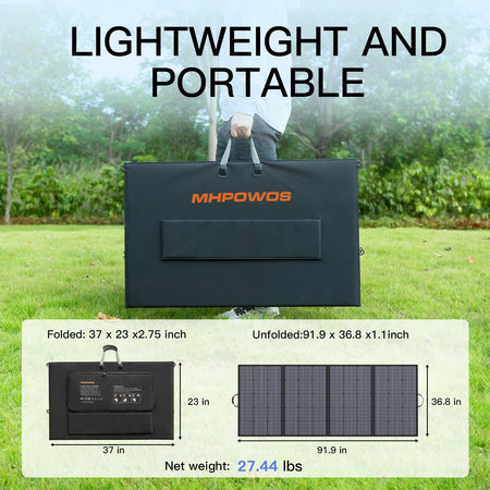 Upoznajte MHPOWOS 400W sklopivi prijenosni solarni punjač, kompaktno, visoko učinkovito solarno rješenje izgrađeno za kampiranje, avanture na otvorenom i potrebe za napajanjem izvan mreže. S monokristalnim silikonskim ćelijama i sklopivim dizajnom u obliku kofera, ovaj panel pruža solidnu energiju dok ostaje lako prenosiv i jednostavan za postavljanje bilo gdje.