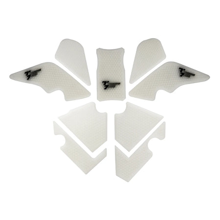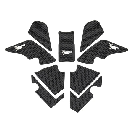 Yamaha Tenere 700 XTZ 700 Non-Slip Side Fuel Tank Stickers su izrađeni da odgovaraju modelima 2019–2020 Yamaha XTZ 700 / Tenere 700 (i XTZ690 varijantama), pružajući čvrstu, vodootpornu gumenu podlogu koja poboljšava prianjanje i povjerenje vozača. Jedinstvena tekstura prianjanja je mekana, ali izdržljiva, pružajući poboljšano prianjanje i osjećaj kako biste mogli održavati stabilan položaj tijela tijekom skretanja i kočenja. To znači manje umora na dugim vožnjama i više fokusa na put ispred, bez brige o klizanju ili proklizavanju na rezervoaru goriva. Ljepljiva podloga visoke čvrstoće osigurava podloge točno tamo gdje ih stavite i neće oštetiti ili utjecati na boju.