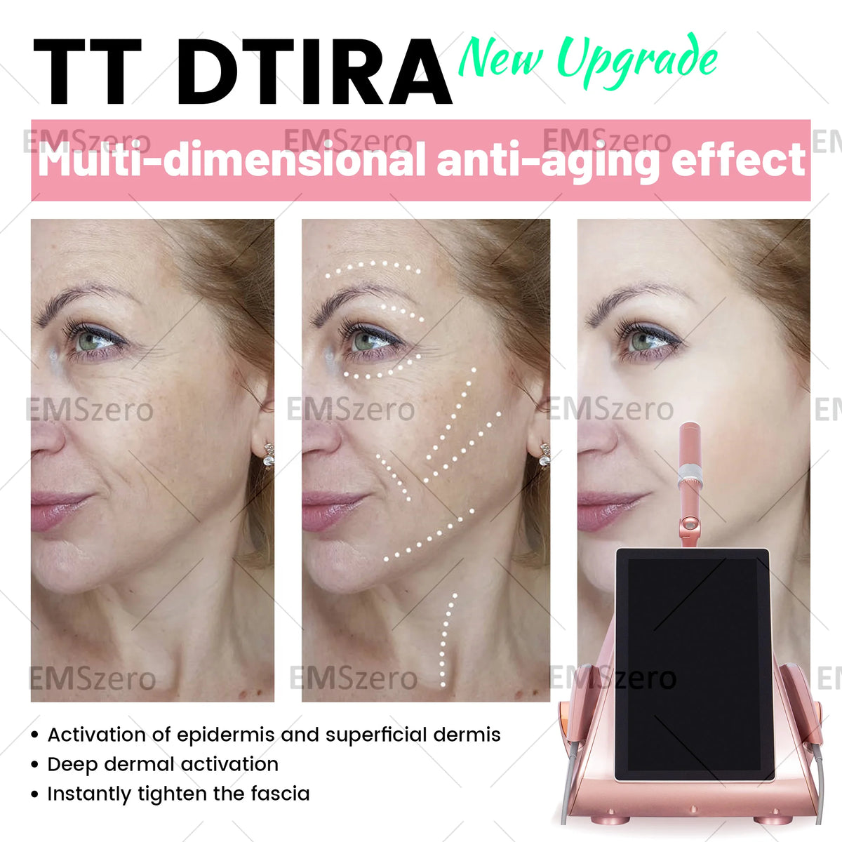 - Ciljano učvršćivanje i podizanje kože: ultramicro pulsna energija podržava dublju dermalnu aktivnost za glađu, čvršću kožu.