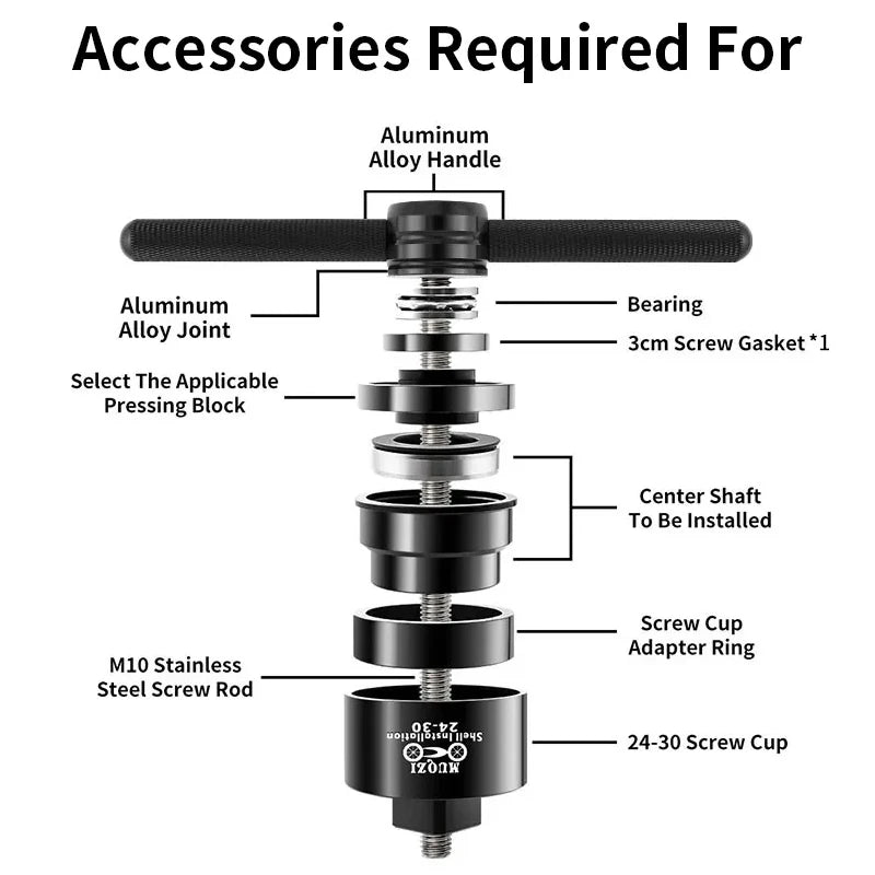 - 1 x MUQZI alat za instalaciju i demontažu donjeg ležaja (alat za statičku instalaciju i demontažu za pritiskanje u središnju osovinu)