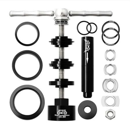 Upoznajte MUQZI alat za donje ležajeve — svestran, jednostavan za korištenje alat izrađen za postavljanje i uklanjanje donjih ležajeva na širokom rasponu bicikala. Bilo da obavljate rutinsko održavanje ili se suočavate s potpunim osvježavanjem pogonskog sklopa, ovaj alat čini posao bržim, čišćim i pouzdanijim. Njegova izdržljiva konstrukcija i promišljen dizajn pomažu vam da primijenite ravnomjernu silu, zaštitite svoj okvir i postignete profesionalne rezultate kod kuće ili u radionici. Posebno je prikladan za BB86, BB30, BB91, BB92, PF30 ležajeve s pritiskom i za postavljanje većine donjih ležajeva s šupljim navojem.