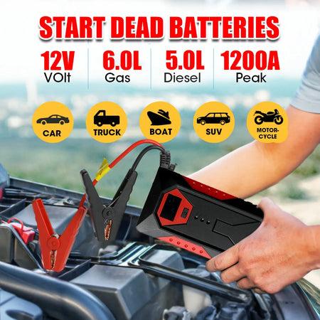 Savršeno za vlasnike automobila, setove za pomoć na cesti, mehaničare i entuzijaste na otvorenom — podržano pouzdanom izvedbom i dizajnom koji je certificiran za sigurnost. Dodajte 1200A Auto Jump Starter u svoju garažu ili pretinac za rukavice danas kako biste osigurali brza pokretanja i miran um.