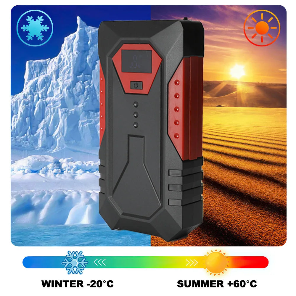 1200A Auto Jump Starter – Ultra Snažan Pokretač Snage — Kompaktni 18000mAh 12V pokretač dizajniran za pouzdano pokretanje benzinskih i dizelskih vozila, nudi robusnu podršku od 600A–1200A u obliku prijenosne power bank.