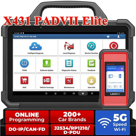 Upoznajte Launch X431 Pad VII Elite — vrhunski profesionalni dijagnostički tablet razine OE, izgrađen za ozbiljan automobilski rad. Ovaj sve-u-jednom alat ujedinjuje dijagnostiku cijelog sustava, usluge resetiranja, aktivne testove, kodiranje ECU-a i online programiranje, pomažući tehničarima da pojednostave popravke i smanje vrijeme zastoja. Njegova SmartLink CVCI kutija djeluje kao neprimjetan prolaz za J2534 programiranje, omogućujući zamjene ECU-a, aktivacije funkcija i ispravke softvera bez skupih tvorničkih alata.