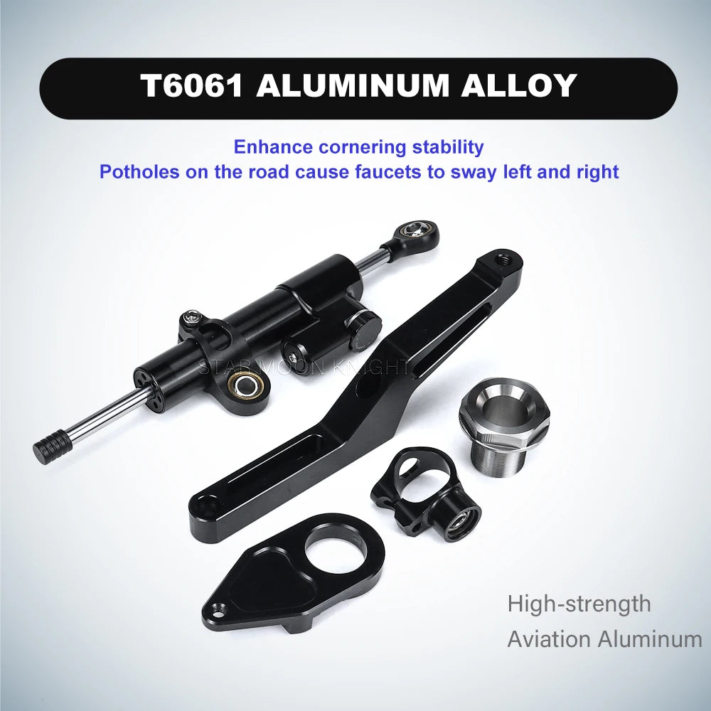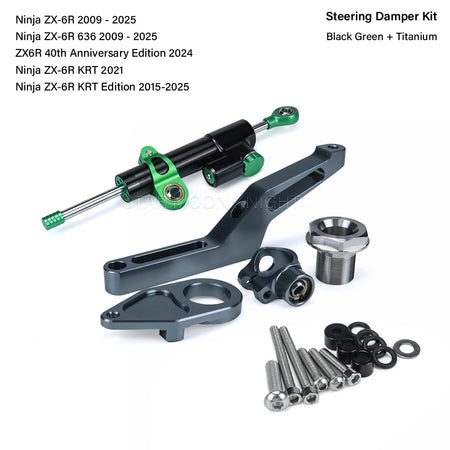 Dizajnirano za vozače Kawasaki Ninja ZX-6R koji zahtijevaju stabilno, responzivno upravljanje, ovaj Set apsorbera upravljača s dodacima za nosač prigušivača pruža precizno prigušenje i stabilnost u uvjetima na cesti i stazi. Izrađeno od CNC-obrađenih aluminijskih blokova i s tvrdim anodiziranim završnim slojem, ostaje ultra-lagano, a istovremeno nevjerojatno snažno, pomažući vam da smanjite umor i održite kontrolu tijekom agresivne vožnje ili vožnje velikim brzinama. Ovaj set je dizajniran za smanjenje podrhtavanja upravljača i pružanje predvidljivijeg povratnog signala, tako da možete voziti s povjerenjem od prvog kruga do posljednjeg.