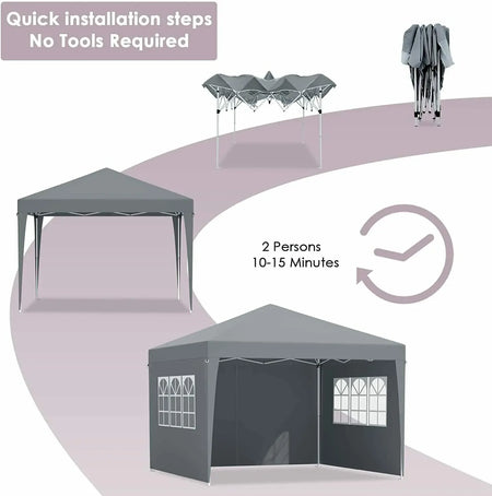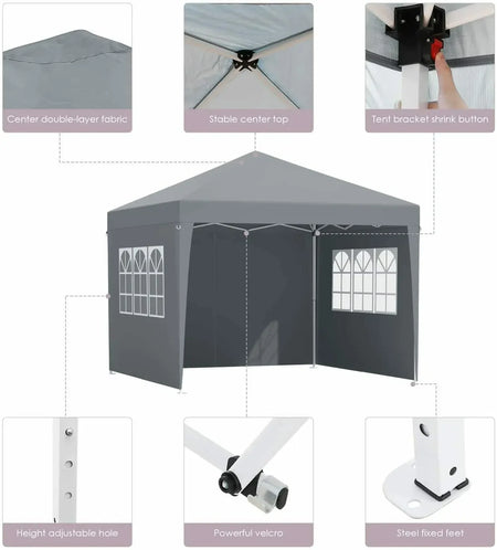 Iskusite vanjsku sjenu i svestranost s 3x3m sklopivim gazebo šatorom s 4 bočna panela za vrt. Savršeno za vrtne zabave, plažne tržnice, piknike, vjenčanja i sportske događaje, ovaj čvrsti nadstrešnica kombinira izdržljivu konstrukciju s jednostavnom postavom kako bi vas održala hladnima, zaštićenima i udobnima u bilo kojem vanjskom okruženju.