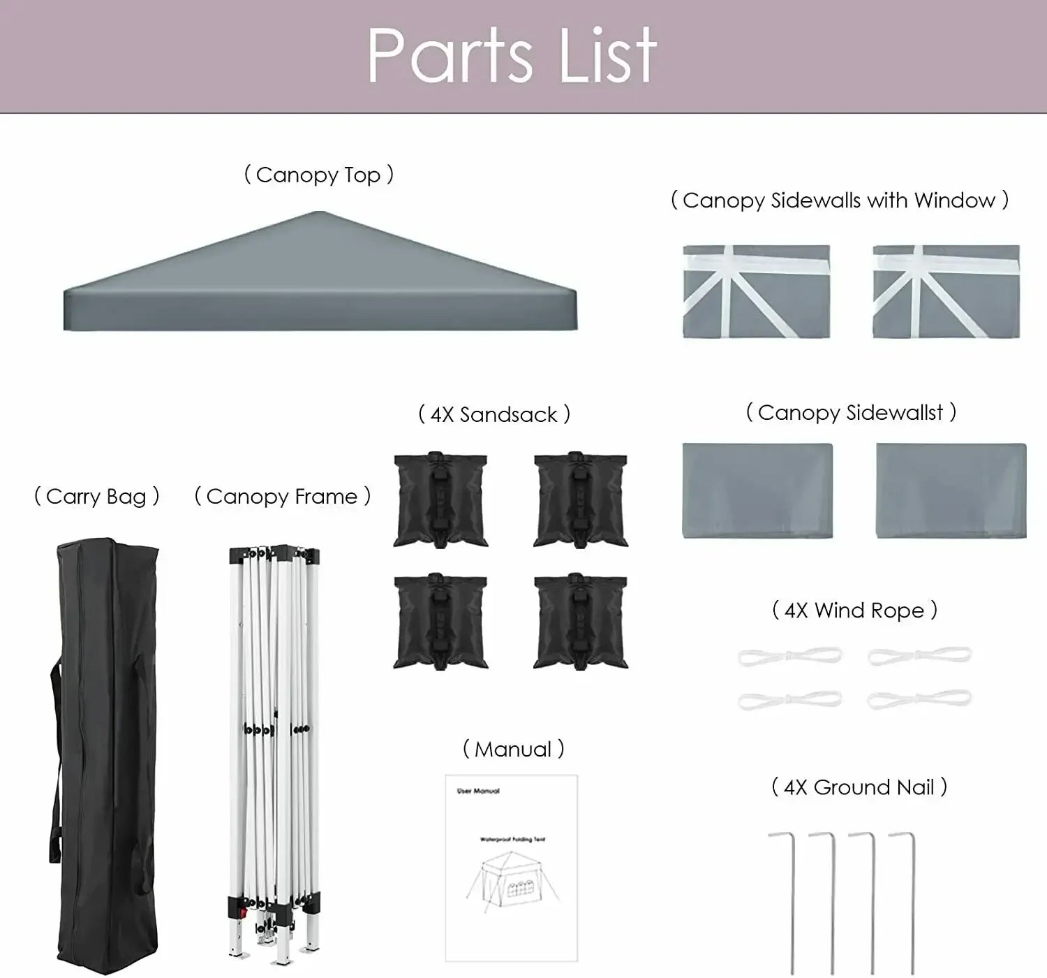 - Uključeni dodaci: Četiri čelična klinova, četiri uže za vjetar, četiri vreće s pijeskom, torba za nošenje