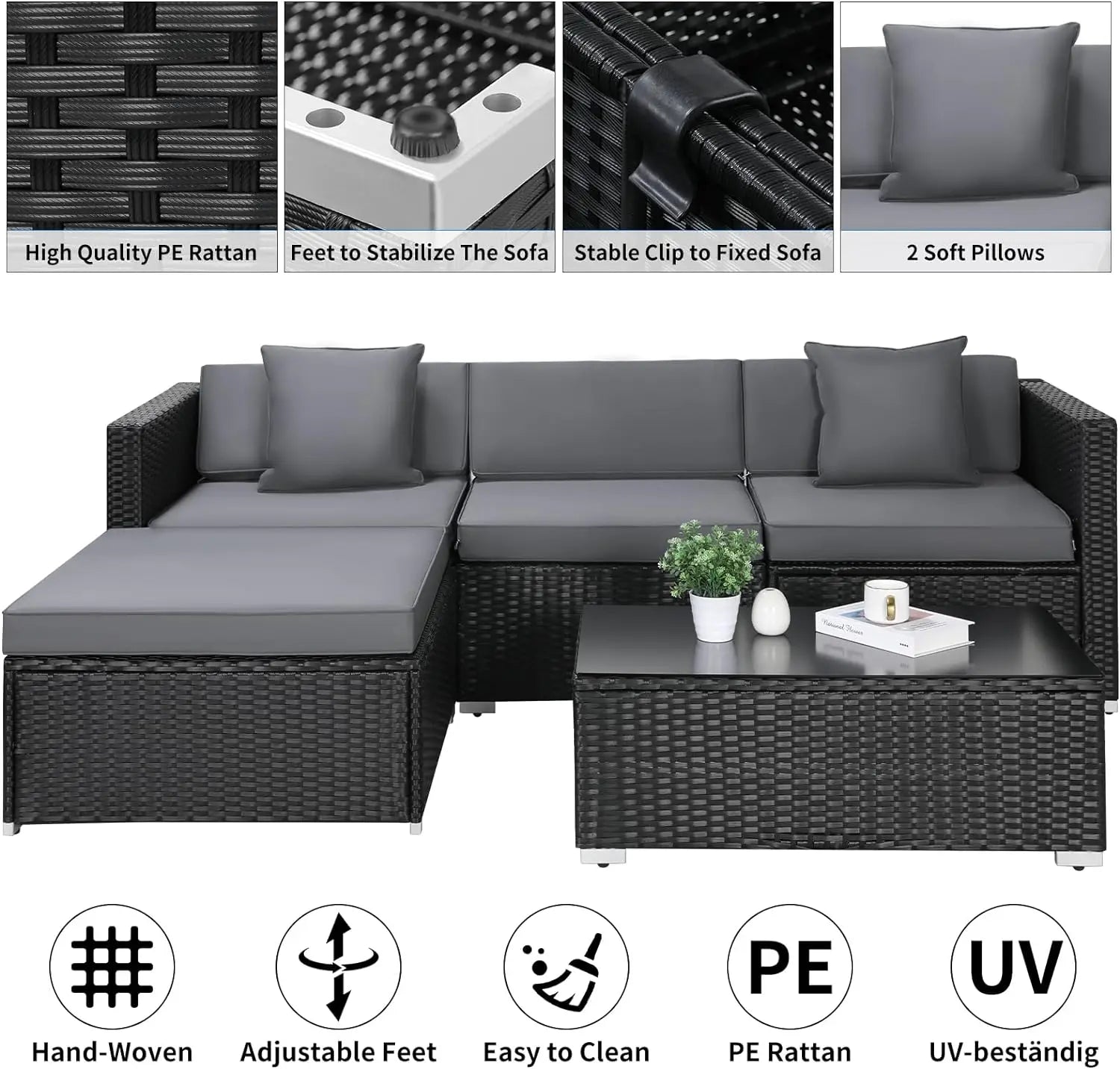 Polyrattan Lounge Sofa Set za 4 do 5 osoba za vanjsku terasu