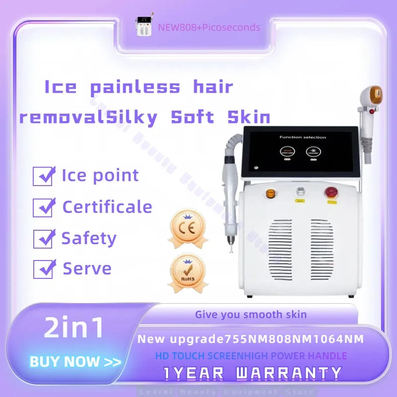 - Svestran sustav s 3 valne duljine (755nm + 808nm + 1064nm) podržava učinkovito uklanjanje dlaka, sigurno uklanjanje tetovaža, pomlađivanje kože i tretman akni u jednom uređaju.