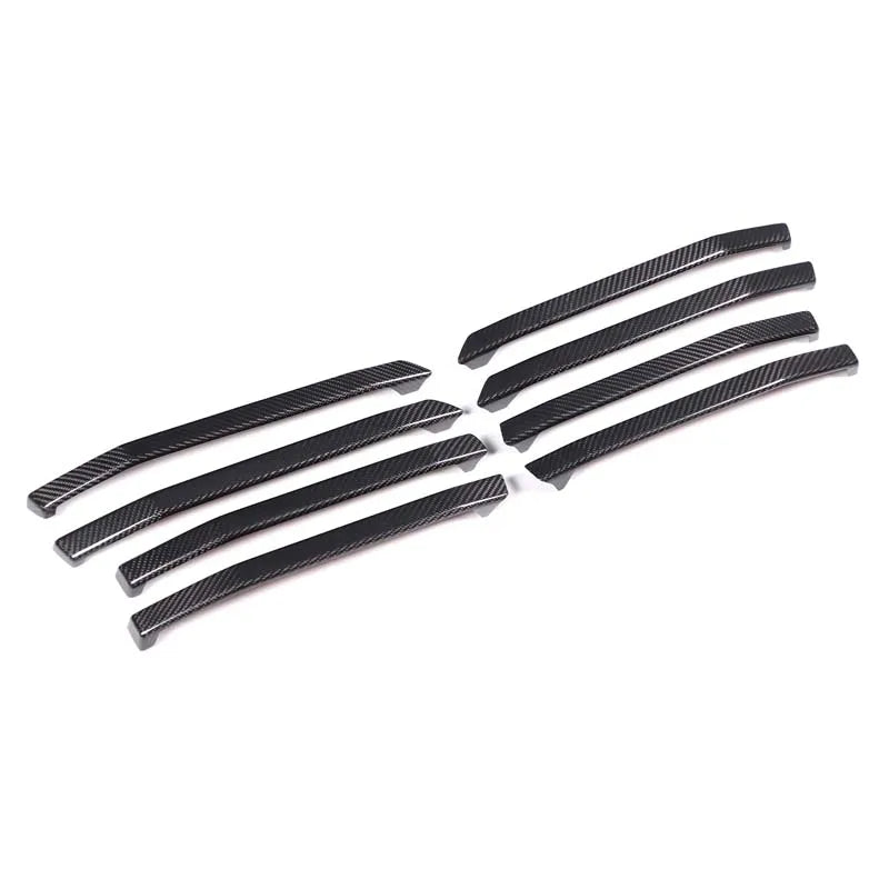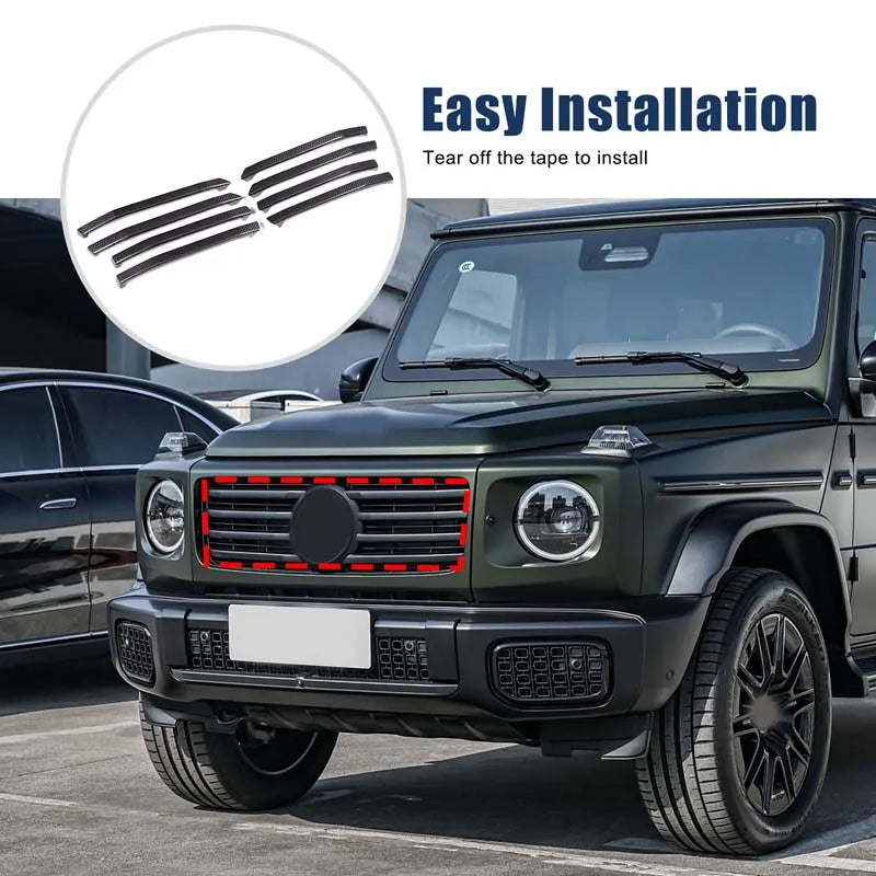Pravi karbonski vlaknasti prednji rešetkasti trak za Mercedes G Class pruža hrabar, premium nadogradnju za vanjštinu G-Wagona. Izrađen od visokokvalitetnog pravog karbonskog vlakna, ovaj dekorativni vanjski dodatak dodaje autentičan, trkački inspiriran izgled dok pruža laganu zaštitu prednjoj rešetki od ogrebotina i svakodnevnog trošenja. Set od osam komada dizajniran je za Mercedes-Benz G-Class W465 2025+ i osmišljen je za jednostavnu, preciznu instalaciju. Proizveden u ISO9001-certificiranoj tvornici u kopnenoj Kini, ovaj komplet kombinira izdržljivost s rafiniranim završetkom koji nadopunjuje robusnu siluetu vozila.