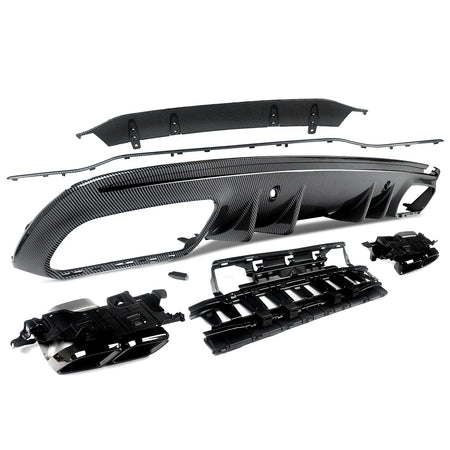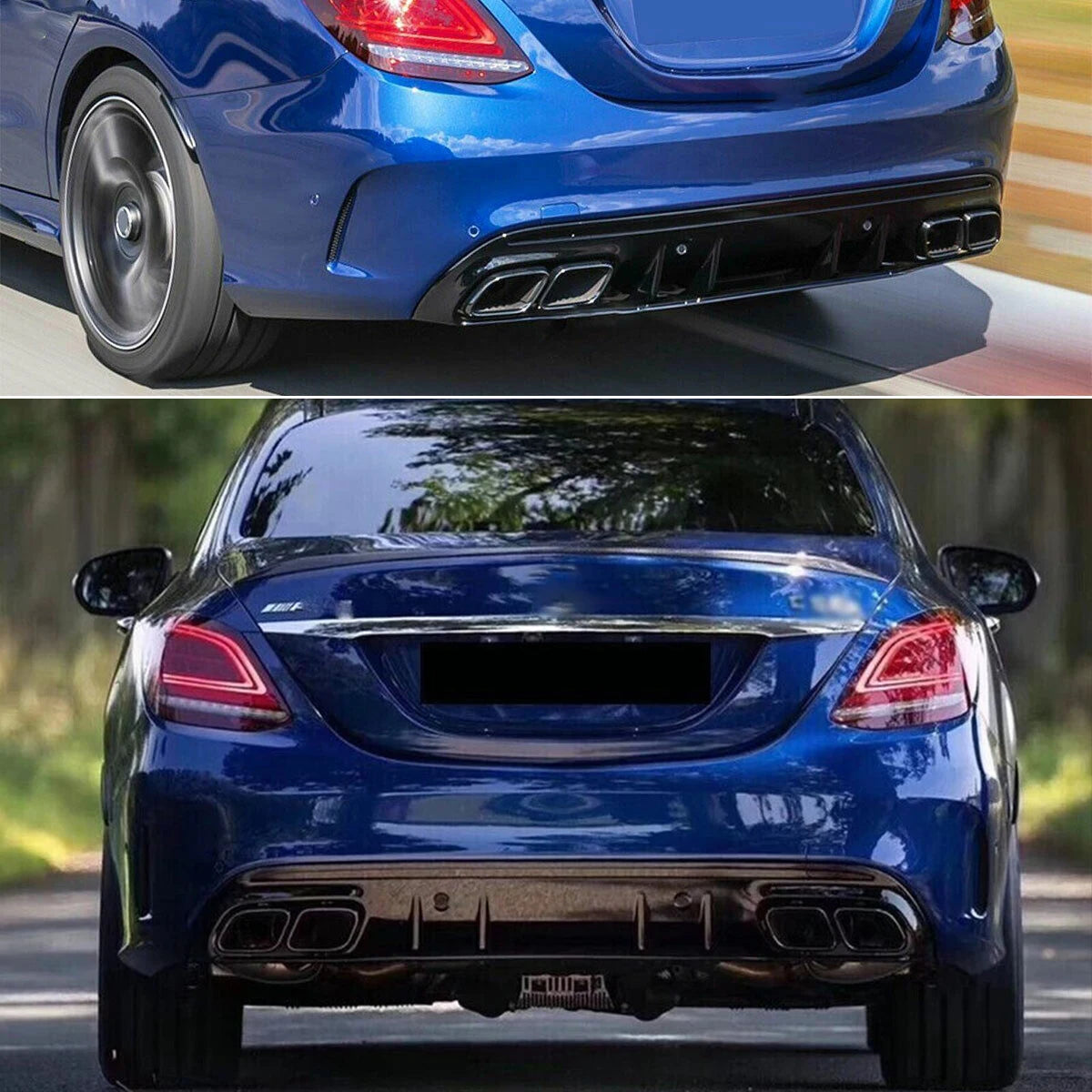 Mercedes W205 Stražnji Difuzor s Ispravcima Ispuha, AMG Stil Izgled Karbon Fibera