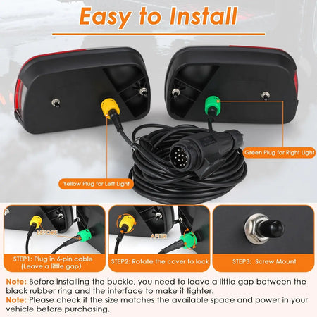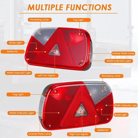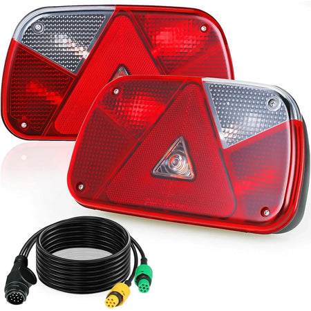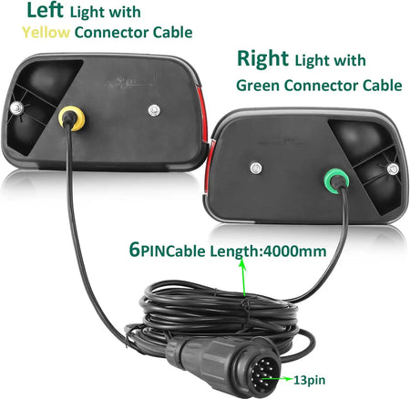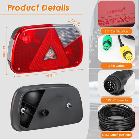 Upoznajte set stražnjih svjetala za prikolicu od 12V s 13-pinskom utičnicom i 5,5 m kabelom — robusno, jednostavno za instalaciju rješenje za osvjetljenje dizajnirano za prikolice, karavane, kamione i još mnogo toga. Ovaj set stražnjih svjetala od 2 dijela pruža svijetlu, pouzdanu iluminaciju s 7 bitnih funkcija kako bi vas održao vidljivim i usklađenim na cesti.