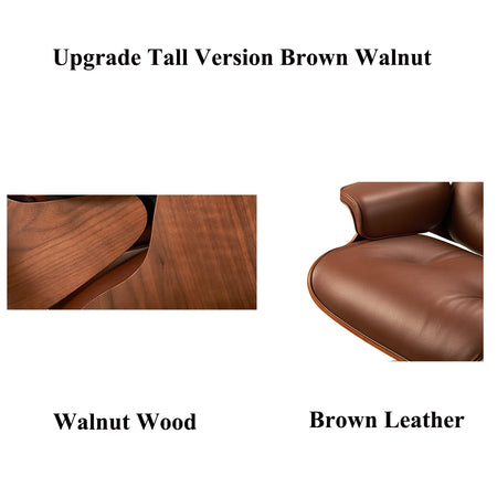 Replica kožna lounge stolica visoka s otomanom od crnog oraha nudi modernu eleganciju s visokom siluetom dizajniranom za ultimativnu udobnost. Ova lounge stolica izrađena je od 100% prave kože i čvrstog okvira od drva s visokom gustoćom, pružajući rafinirani izgled za dnevne boravke, spavaće sobe ili izvršne prostore. Stolica ima kut nagiba od 15° za ergonomski potporu, visinu sjedala od 17 inča i široke naslone za ruke koji pozivaju na duge, opuštajuće sesije. Otoman, završen u crnom orahu, upotpunjuje set i pruža savršeno mjesto za odmor vaših nogu.
