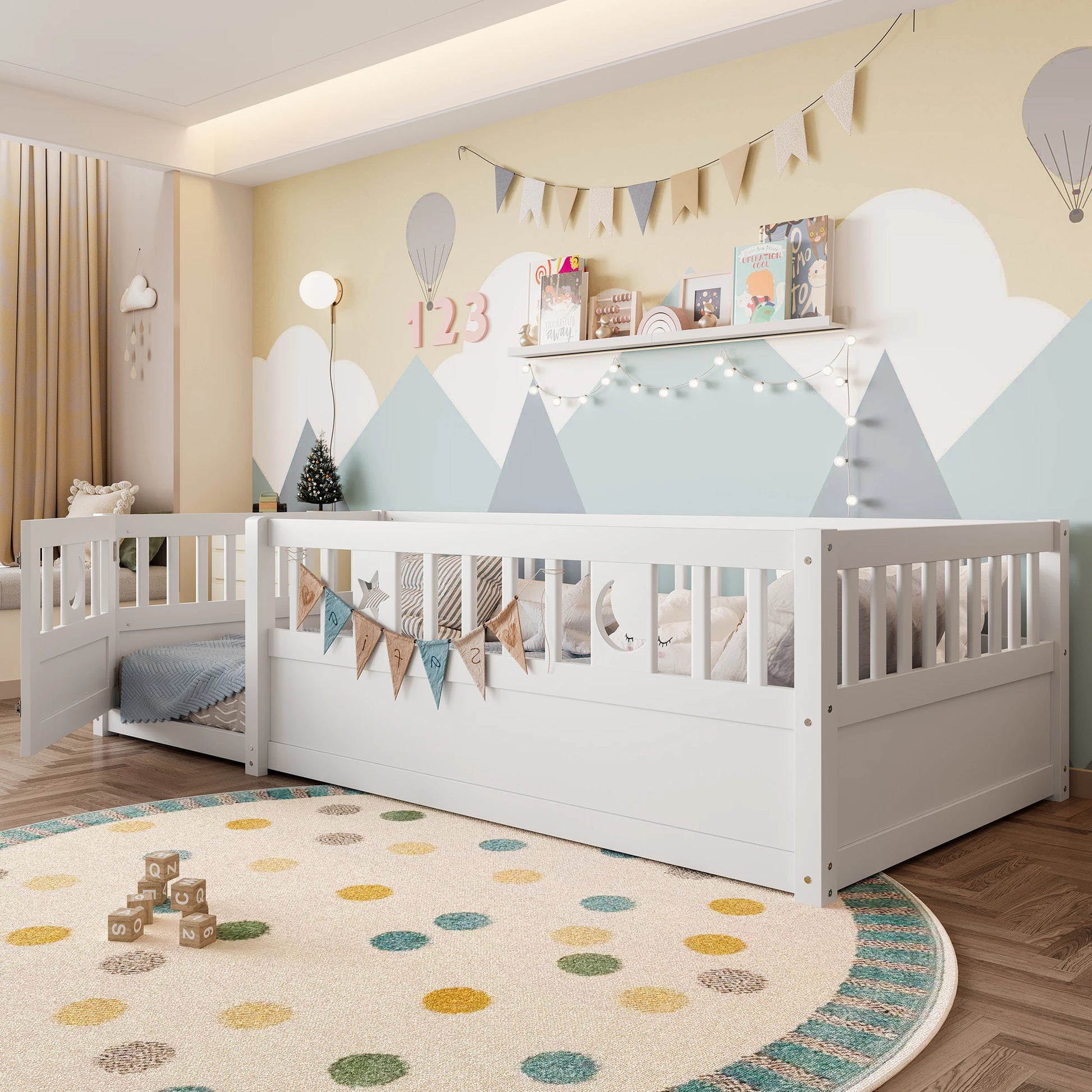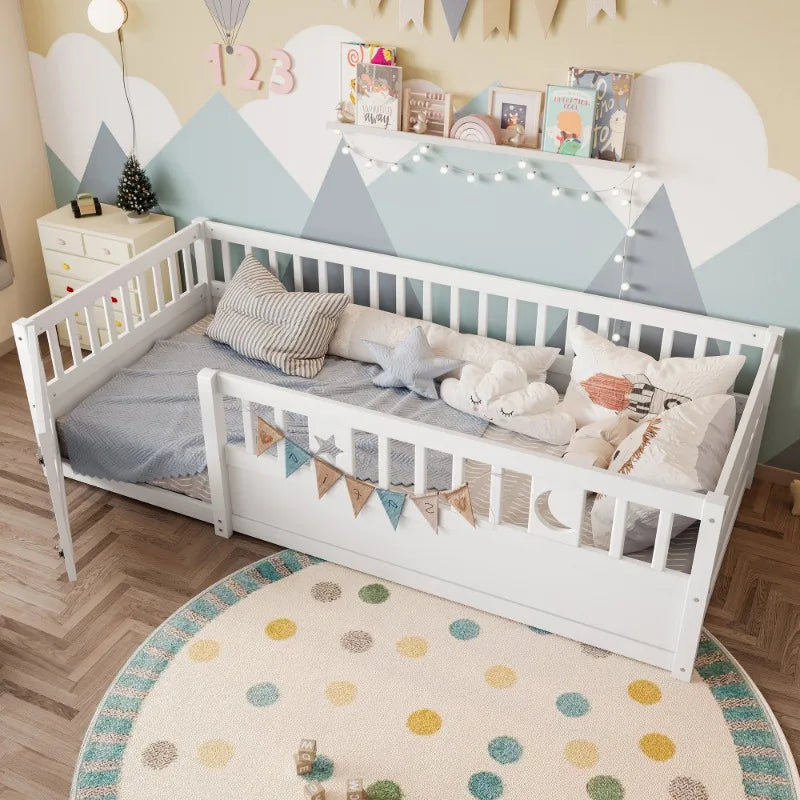 - Dizajn usmjeren na sigurnost: Integrirana brava za sigurnosnu ogradu i okolna šina pomažu u sprječavanju slučajnih padova tijekom spavanja ili igre, pružajući roditeljima više mira.