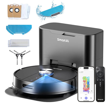 Upoznajte SmartAI S8 Pro Robot Usisavač s Baza Stanicom — visokotehnološki partner za čišćenje dizajniran da održi podove besprijekornima uz minimalan trud. Uživajte u snažnoj usisnoj snazi od 5000Pa i preciznom, bezodržavanju rukovanju prašinom zahvaljujući inovativnoj 3L automatskoj bazi. Nakon svakog ciklusa čišćenja, S8 Pro automatski se vraća na bazu i prazni kantu za otprilike 20 sekundi, tako da rijetko dodirujete prašinu i otpatke. Rezultat su čišći životni prostori s manje svakodnevnog održavanja i više vremena za ono što volite.
