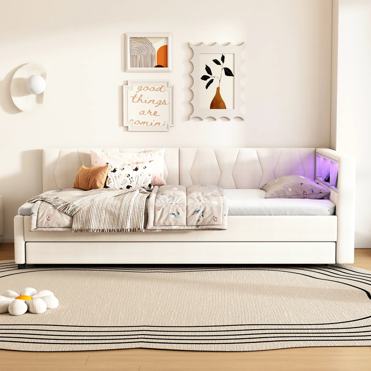 Upoznajte Sofa Krevet 90x200 s USB-C i LED Ambijentalnim Osvjetljenjem na Daljinsko — pametno, prostor-štedljivo rješenje za moderne domove. Izrađen s čvrstim okvirom od platna i MDF-a, ovaj krevet spaja izdržljivost s toplim, prirodnim osjećajem koji odgovara svakoj spavaćoj sobi ili dnevnom boravku. Pametan mehanizam za izvlačenje pretvara sofu u udoban krevet dimenzija 90x200 cm u tren oka, savršen za goste ili svakodnevno opuštanje.
