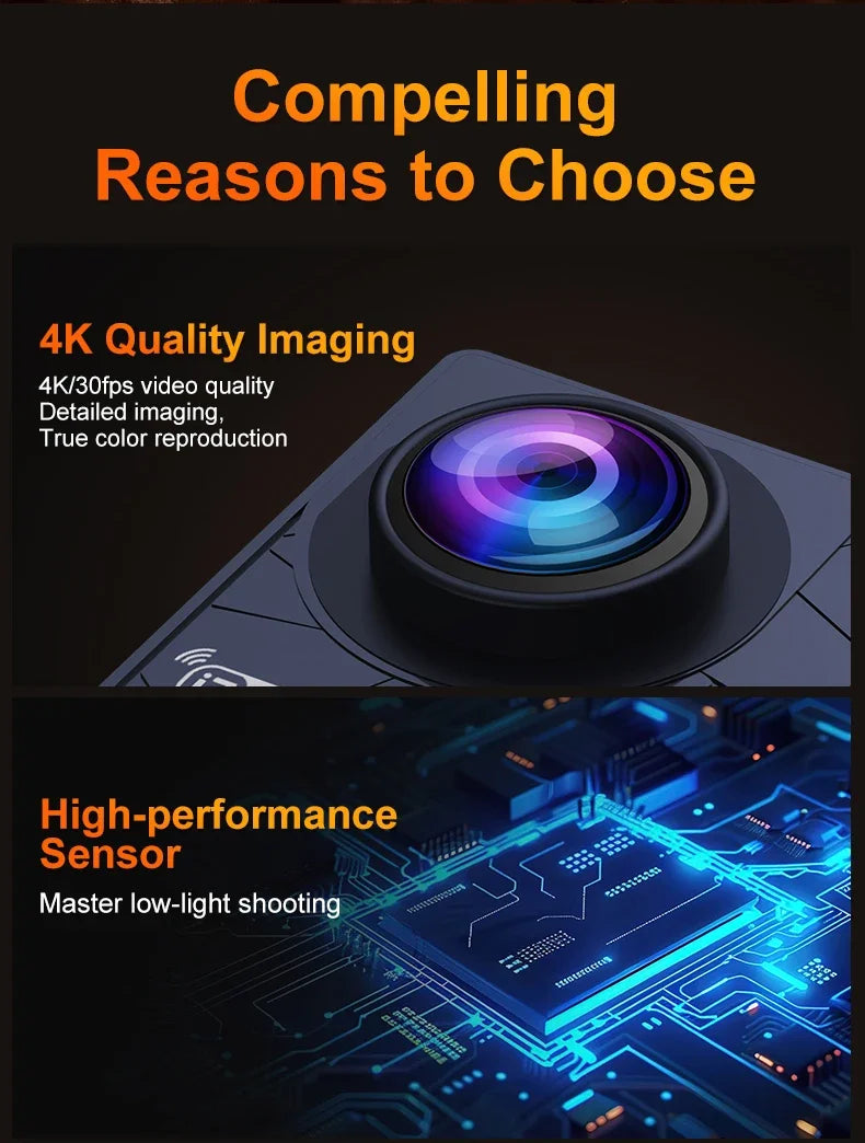 - IP68 Vodootpornost: Zaronite u svoje vodene avanture bez brige; ova kamera je izrađena da izdrži dubine do 30 metara.