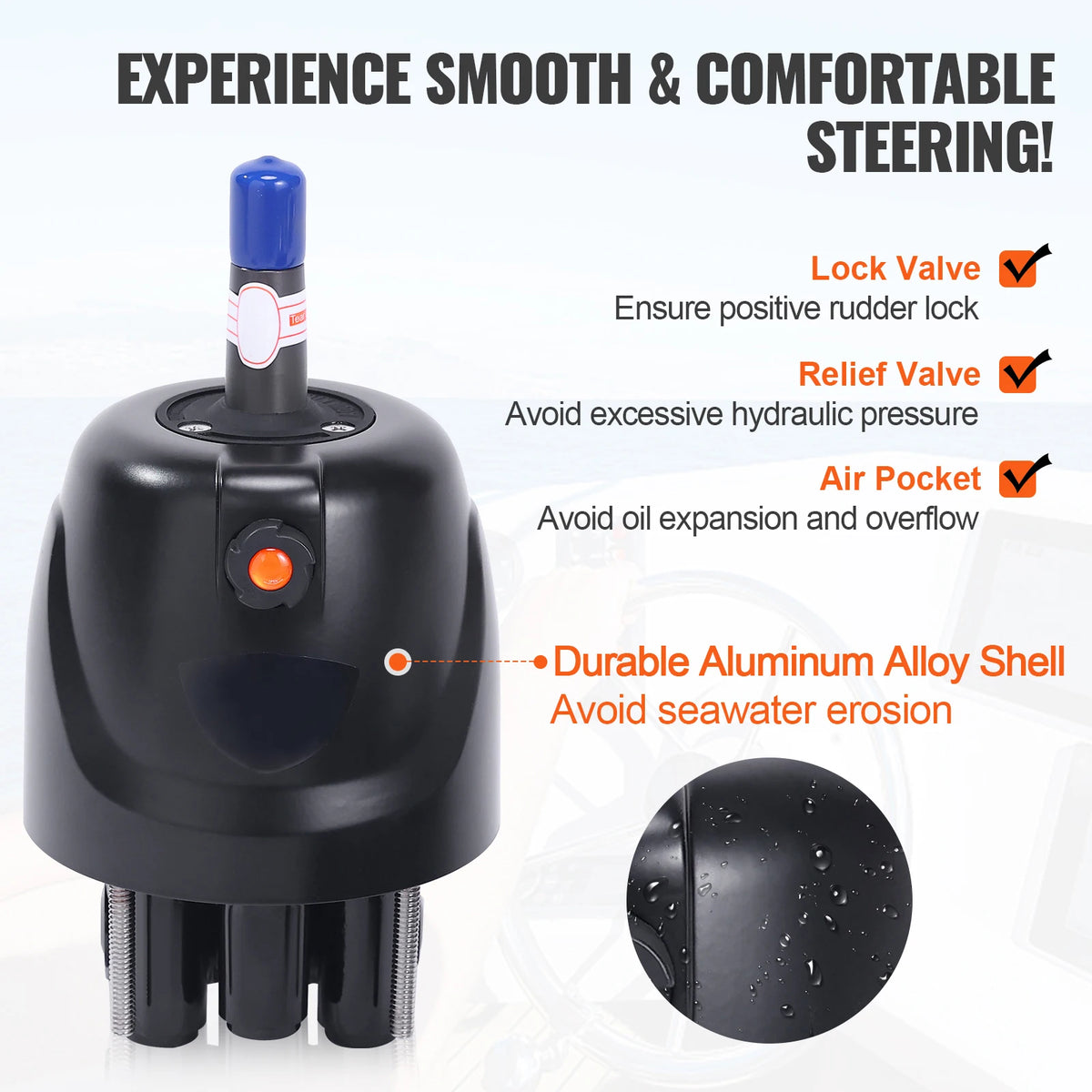 Nadogradite svoje plovilo s hidrauličnim vanbrodskim upravljanjem 150HP 2-smjernim cilindrom—pouzdani sustav upravljanja dizajniran za motore do 150HP. Izgrađen za teške pomorske uvjete, osovina kormila je zatvorena u kućištu od aluminijske legure kako bi se otporna na koroziju, dok hidraulični cilindar upravljanja ima dvostruki zaključavajući ventil za preciznu kontrolu i poboljšanu pouzdanost na svakom putovanju.