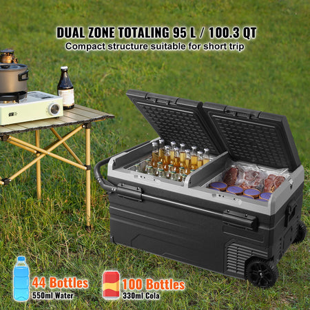 Upoznajte 95L Dual Zone Prijenosni Hladnjak za Automobil, svestrano rješenje za hlađenje dizajnirano za život u pokretu. S unaprijeđenim kompresorom za brzo hlađenje, ovaj 95 L hladnjak s dva područja brzo hladi vaša pića, plodove mora, meso i grickalice te ih održava svježima bez leda. Održava pouzdanu izvedbu u širokom rasponu ambijentalnih temperatura (16–38°C / 60.8–100.4°F) i podržava širok raspon temperatura od -20°C do 20°C (-4°F do 68°F). Sva elektronička i mehanička oprema, uređaji i strojevi koje prodaje InterCyprus zemljama EU su CE certificirani i imaju dvogodišnje jamstvo. Na intercyprus.com od 2002. — pouzdano za kvalitetu i pouzdanost.