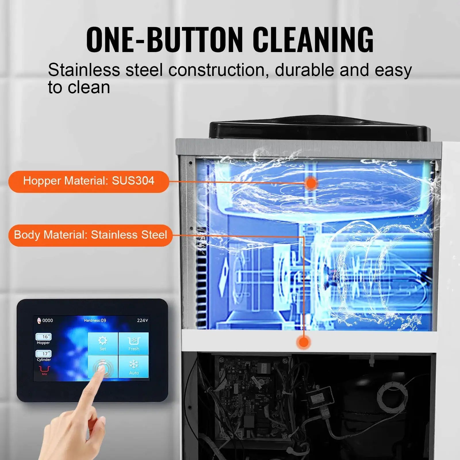 - Jednostavno korištenje: Sučelje s dodirnom pločom, automatsko hlađenje, čišćenje jednim klikom i jasan prikaz vremena proizvodnje i preostale količine.