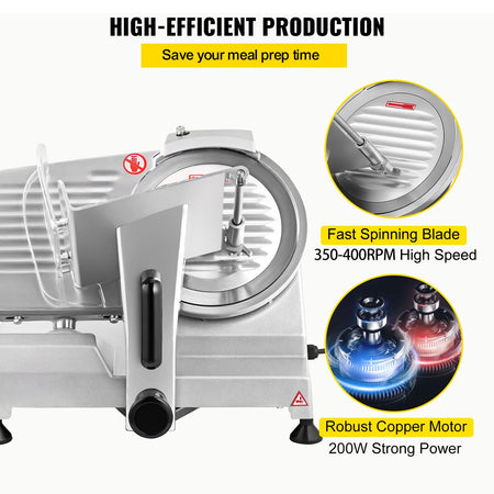 Opremljen snažnim motorom od 200W/340W i brzinom rezanja od 350–400 RPM, ovaj rezač brzo obrađuje meso, sireve, kruh i povrće, smanjujući vrijeme pripreme i otpad.